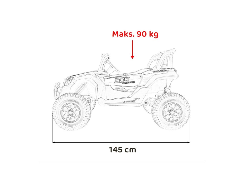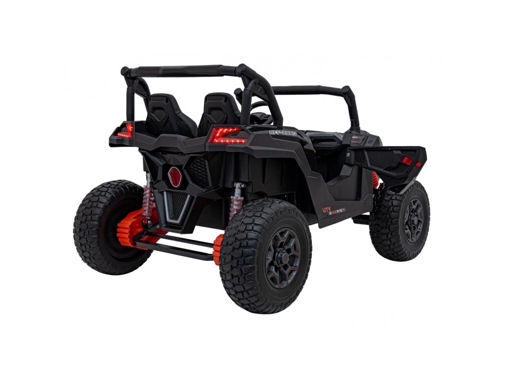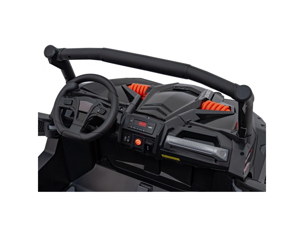 Az elektromos Buggy UTV játékautó erős, 800 W összteljesítményű motorokkal nem hiányozhat egyetlen gyermekgarázsból sem. A játékautót egy 24V 9Ah kapacitású akkumulátor táplálja. A jármű maximális terhelhetősége 60 kg. Út közben a gyermeket minden bizonnyal érdekli majd az MP3, Bluetooth és USB zenelejátszóval ellátott panel .