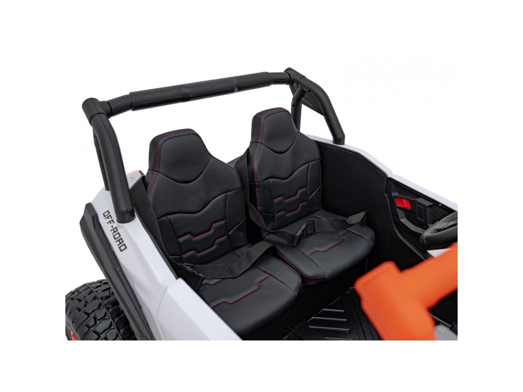 Az elektromos Buggy UTV játékautó erős, 800 W összteljesítményű motorokkal nem hiányozhat egyetlen gyermekgarázsból sem. A játékautót egy 24V 9Ah kapacitású akkumulátor táplálja. A jármű maximális terhelhetősége 60 kg. Út közben a gyermeket minden bizonnyal érdekli majd az MP3, Bluetooth és USB zenelejátszóval ellátott panel .