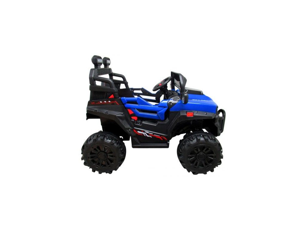 Buggy X8n gyerekautó gazdag felszereltséggel és innovatív dizájnnal. A játékautó belseje biztonsági övvel ellátott üléssel, MP3-as zenepanellel, USB- bemenetekkel és dallamokkal ellátott gombokkal van felszerelve. Az első lámpákkal megvilágítja az utat.