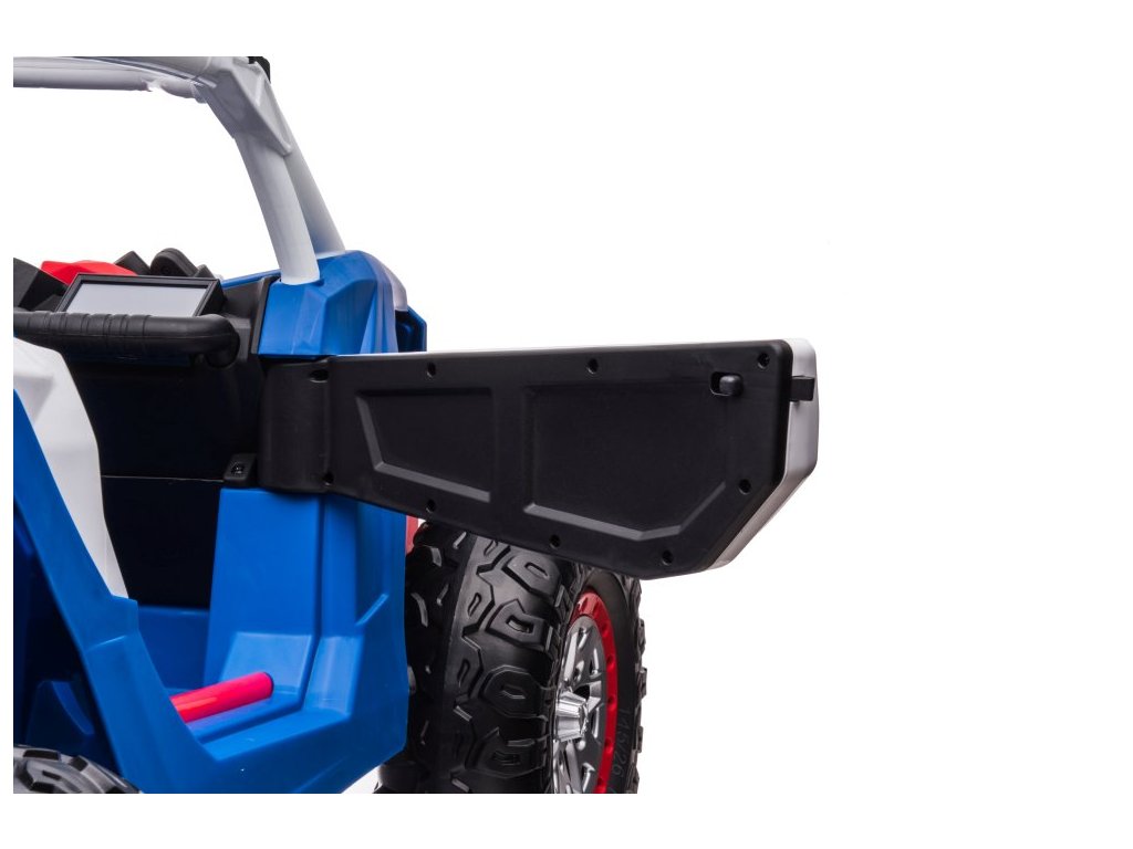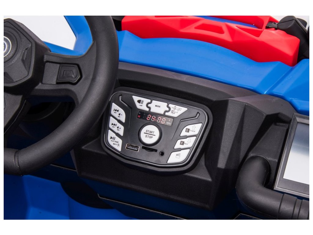 Dětské elektrické autíčko Buggy XB přijíždí na velkých pěnových EVA kolech, která zdolají různé typy terénu. Interiér je vybaven hudebním panelem s Bluetooth, USB a MP3.