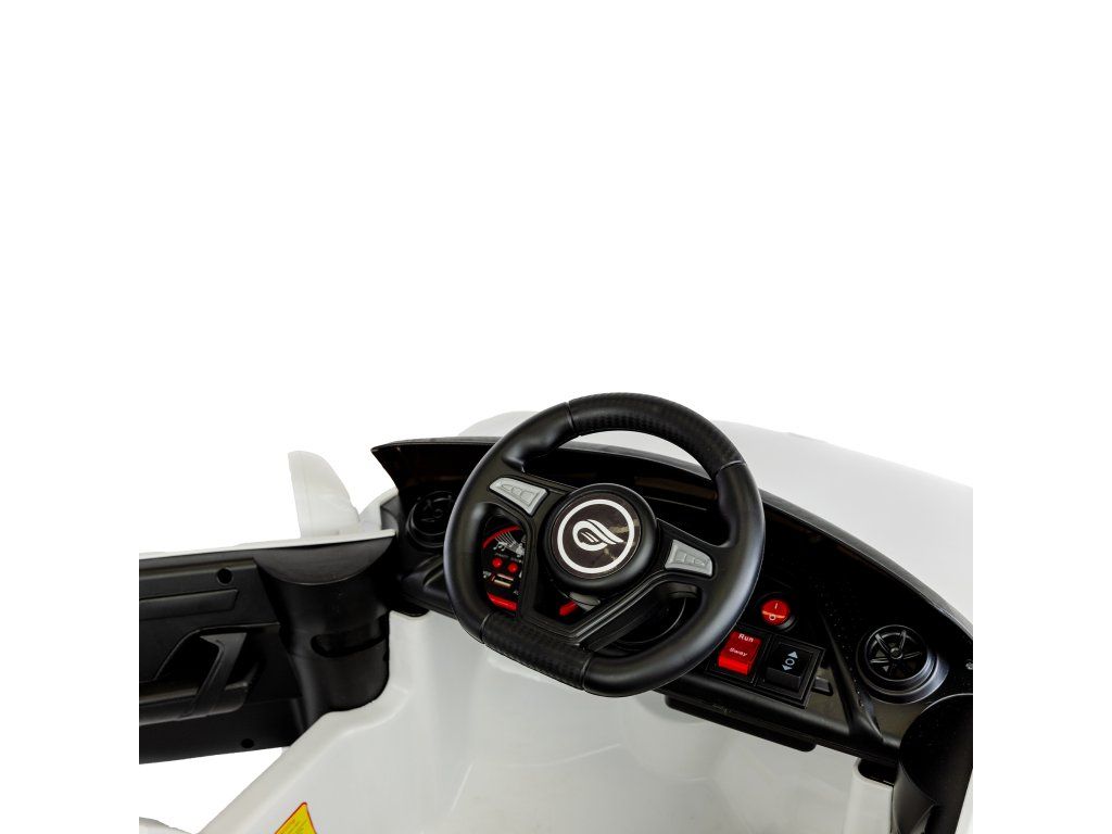 A játékautó belseje környezetbarát bőrüléssel , biztonsági övekkel , zenepanellel AUX, MP3, USB bemenetekkel és dallamokkal ellátott gombokkal van felszerelve. Az első LED-lámpák megvilágítják az utat.