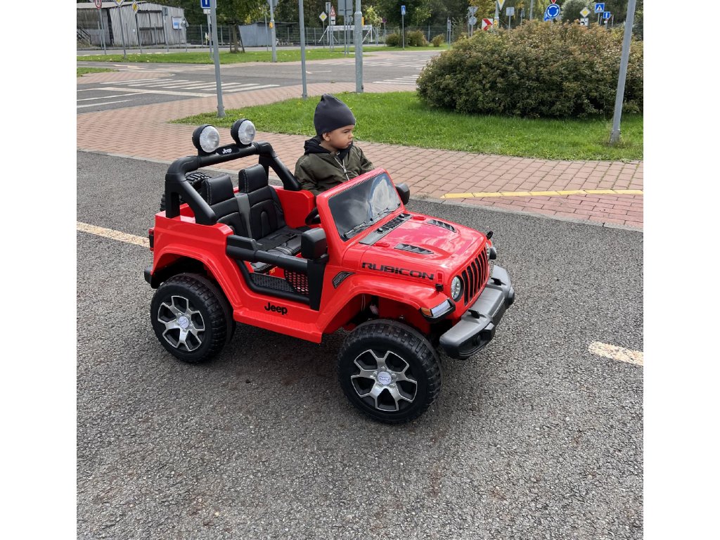Az FM rádióval, Bluetooth, AUX, SD és USB bemenettel felszerelt audio panel még élvezetesebbé teszi a vezetést. A játékautó fényeffektusokkal rendelkezik - első és hátsó LED lámpák. A Jeep Rubicon fémkulcsokkal indul . A vezető kényelméről a kényelmesen formázott, ökológiai bőrből készült ülés és puha hab Eva kerekek gondoskodnak. A habszivacs kerekek csendesek, és nem csak a kövezett terephez alkalmazkodnak.
