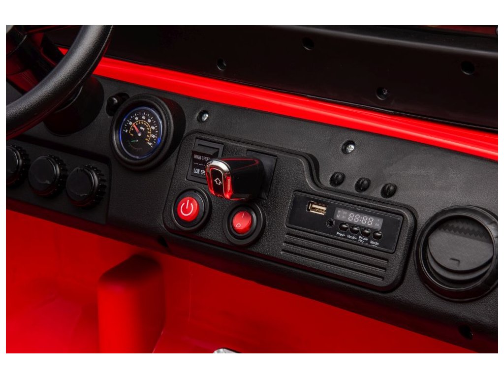 Az elektromos játékautó sima indítású és leállású. A gyermek teljesen önállóan vezetheti a járművet, de a szülők a távirányítóval zavarhatják a vezetést. A távirányító egy Stop biztonsági gombbal van felszerelve, amely azonnal leállítja a járművet és kikapcsolja annak összes funkcióját.