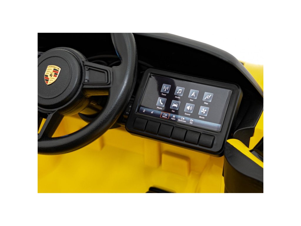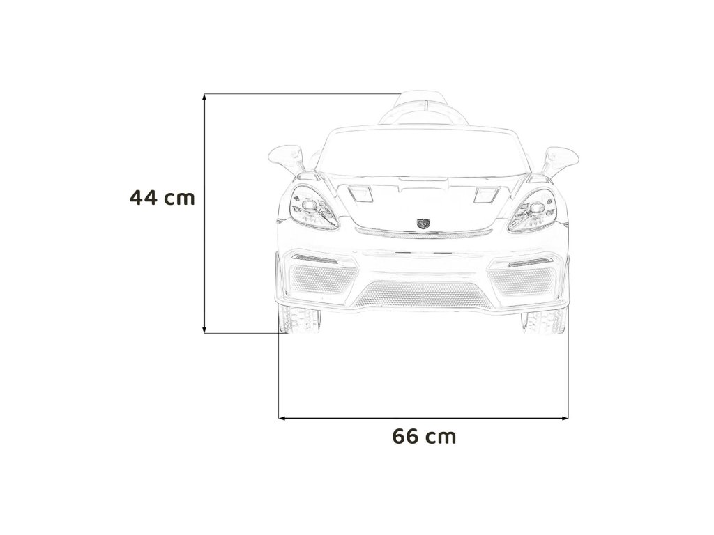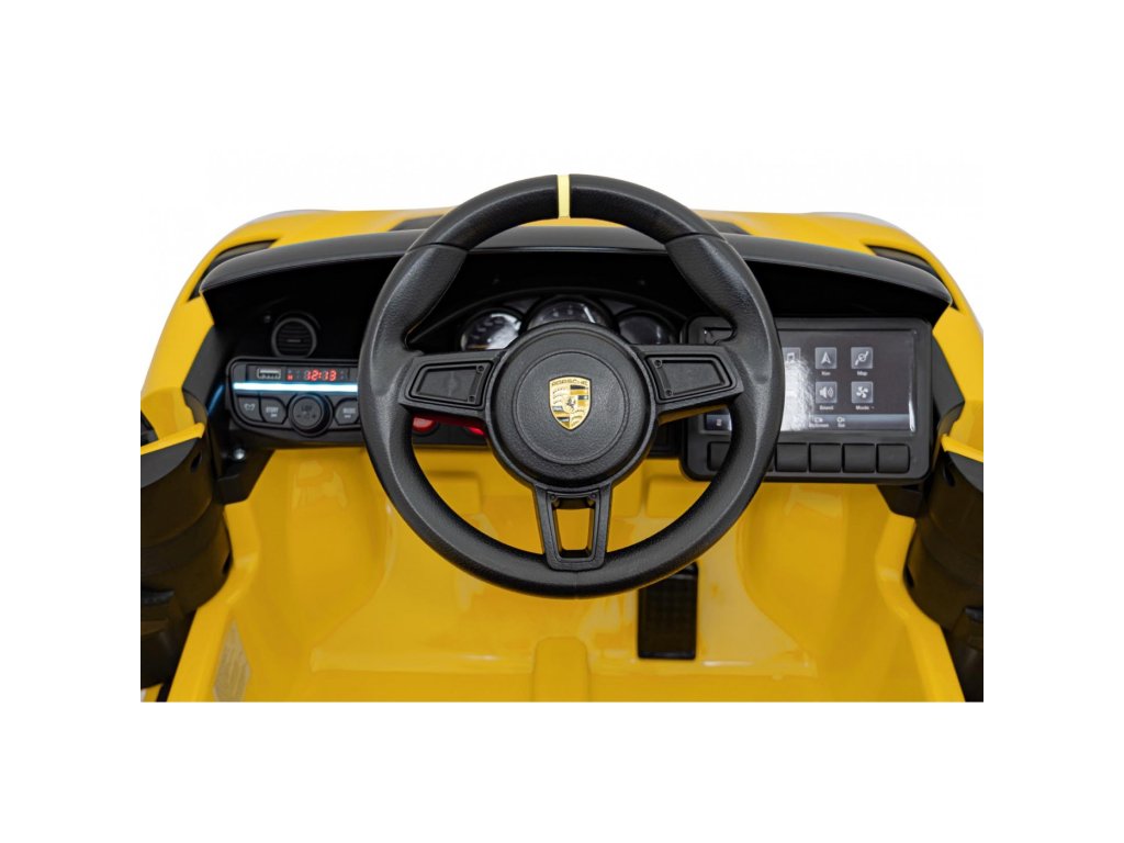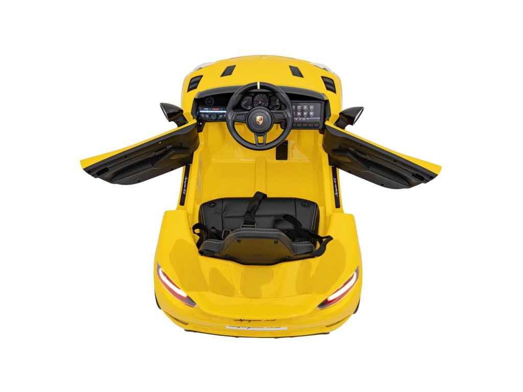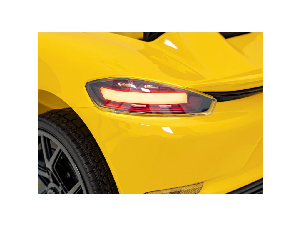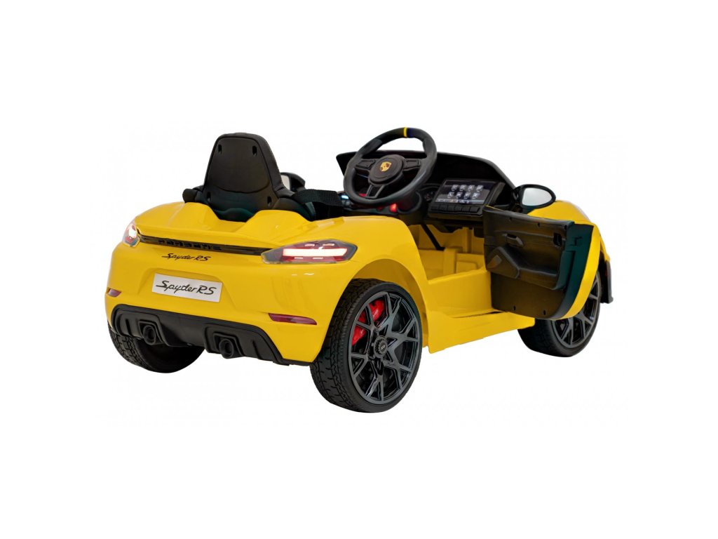 A Porsche Spyder RS 718 elektromos autó két, összesen 90 W teljesítményű motorral és egy 12 V 7 Ah kapacitású akkumulátorral rendelkezik. Az EVA habszivacs kerekek és az öko-bőrrel borított ülés kényelmes utazást biztosít. A zenei panel MP3, USB, AUX, Bluetooth és rádió . Teherbírás A játékautó súlya 30 kg . A játékautó elöl és hátul LED világítással , valamint nyitható ajtókkal rendelkezik.