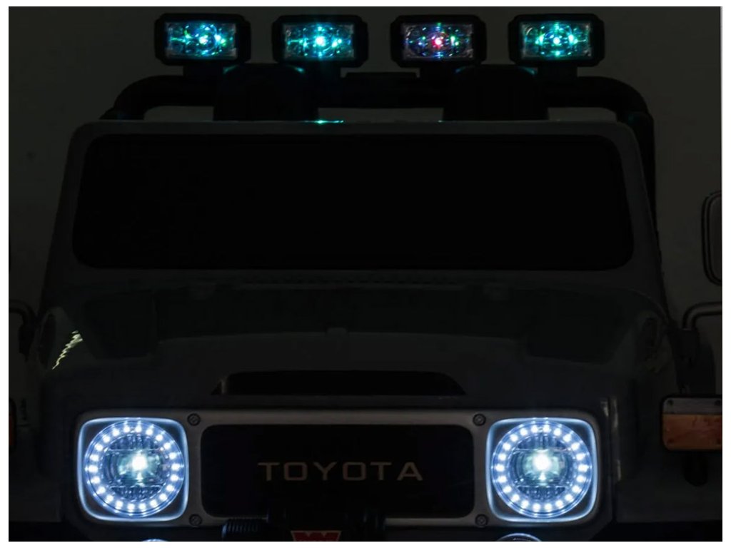 Dětské elektrické autíčko Toyota Land Cruiser přijíždí na pěnových EVA kolech, která při jízdě neruší. Autíčko je vybaveno pohodlnou sedačkou z ekologické kůže s 3-bodovými bezpečnostními pásy.