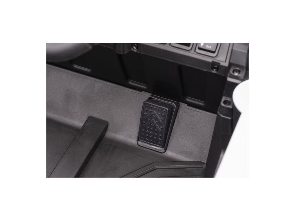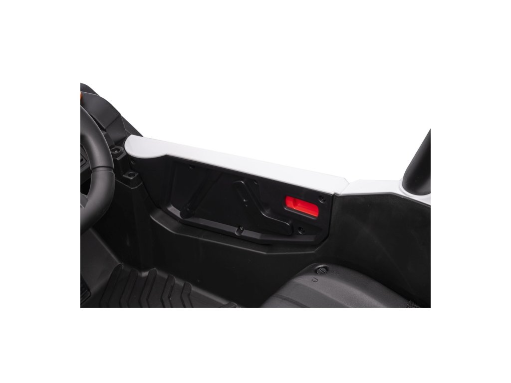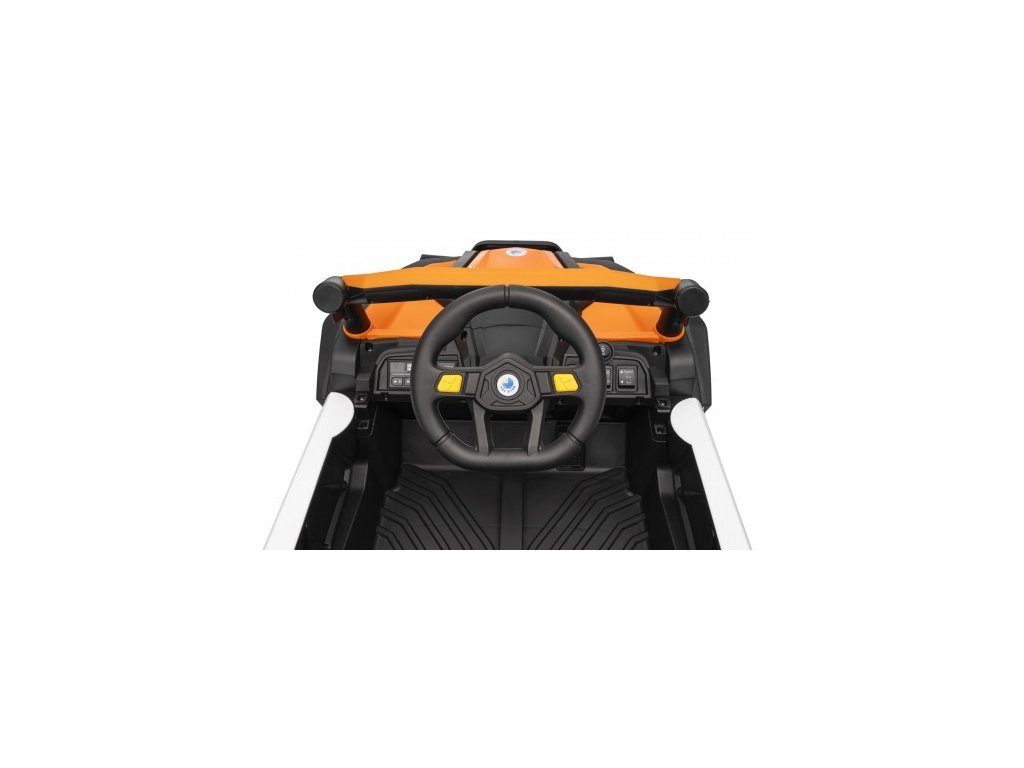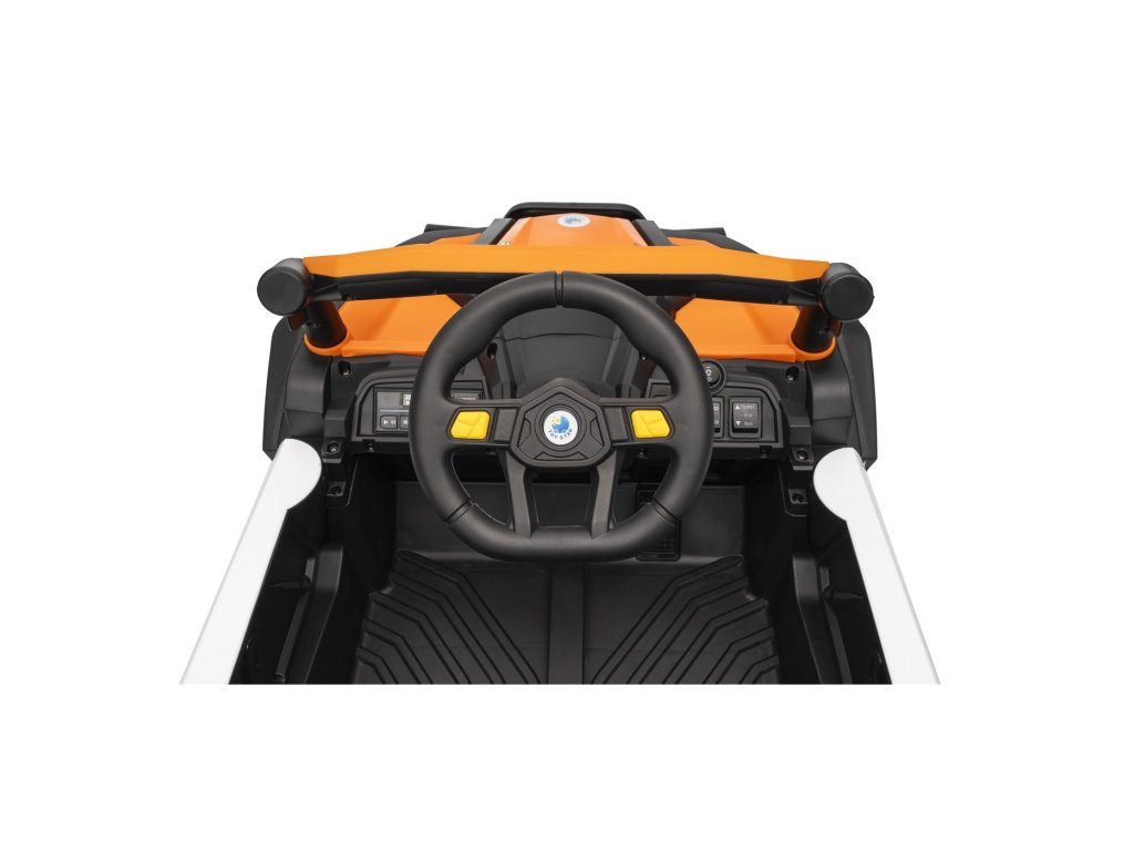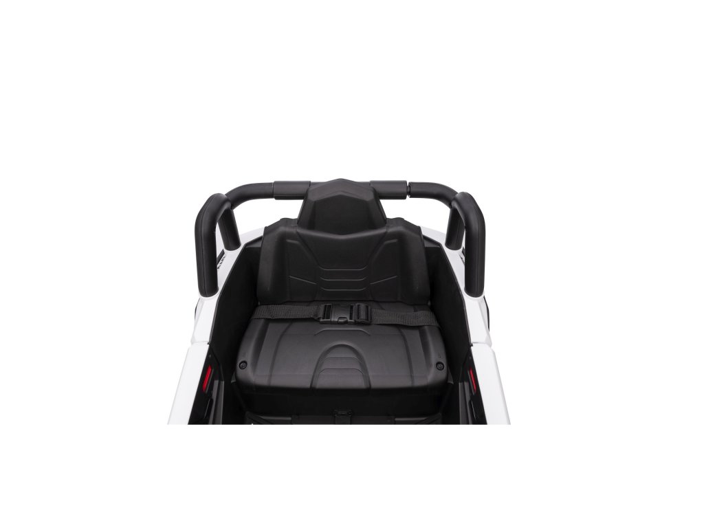 Az elektromos játékautó elkészítésekor a legapróbb részletekre is odafigyeltek, mint például a biztonsági övek, a bőrülés, a zenei panel és a fényeffektek.