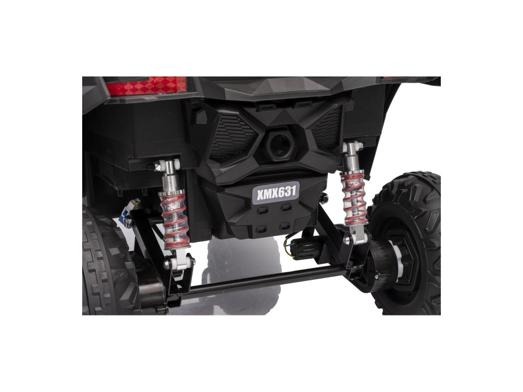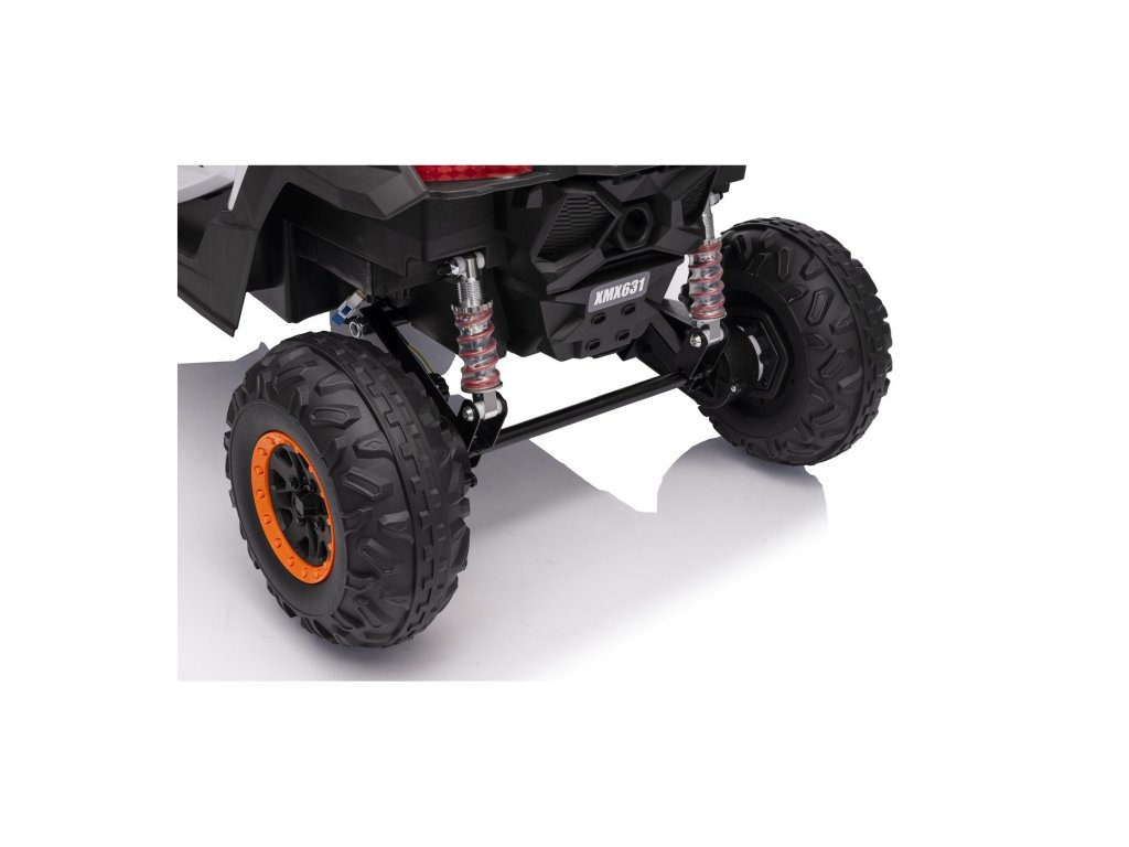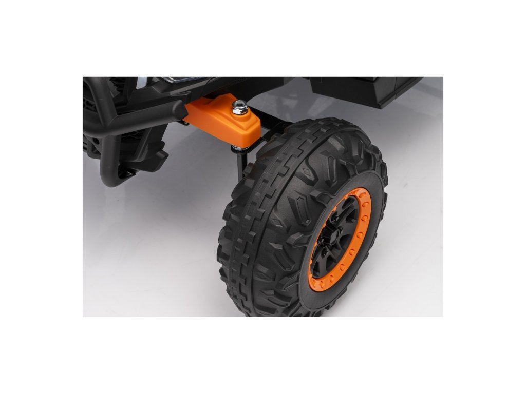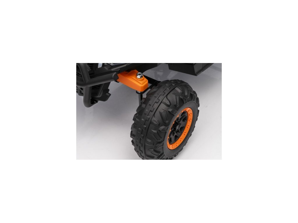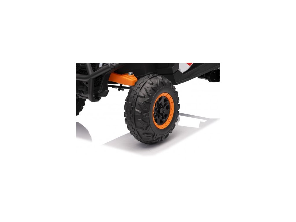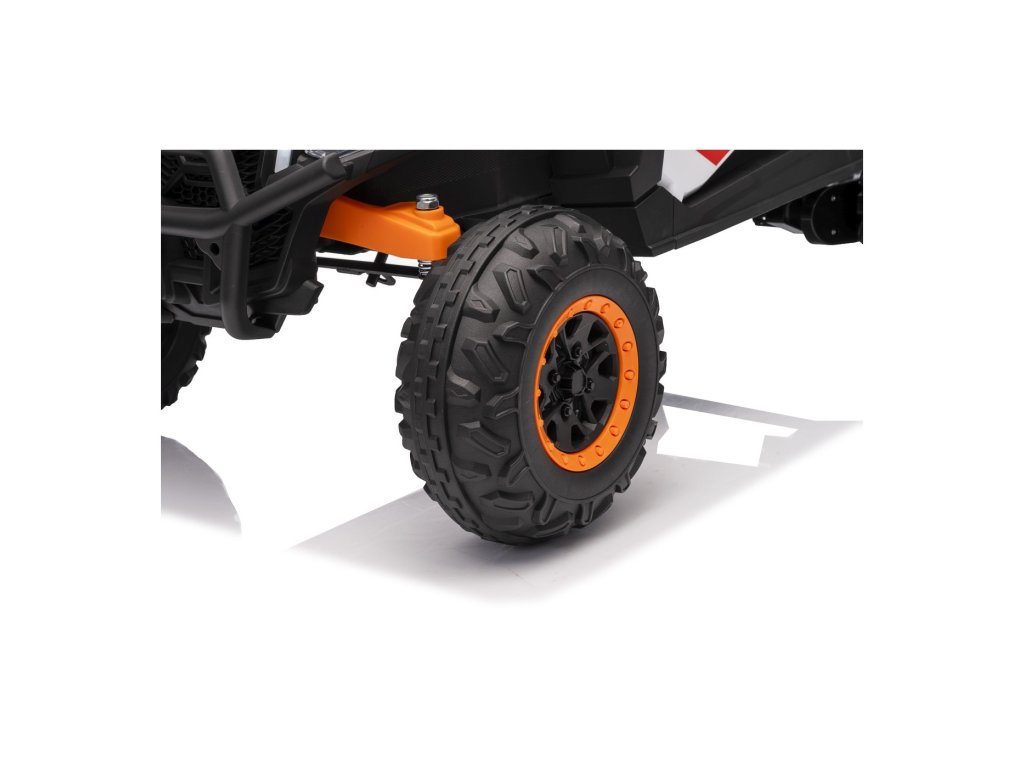 Az autó kerekei puha EVA műanyagból készültek, ami kényelmes utazást biztosít egyenetlen terepen is.