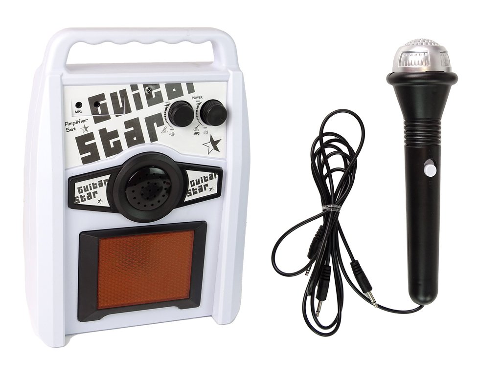 Tartalmaz egy hozzá csatlakozó fehér hangszórót is, amely lehetővé teszi a hang átvitelét nagyobb térbe, így gyermeke igazi sztárnak érezheti magát a színpadon. Fogantyúval is rendelkezik a könnyű hordozhatóság érdekében.