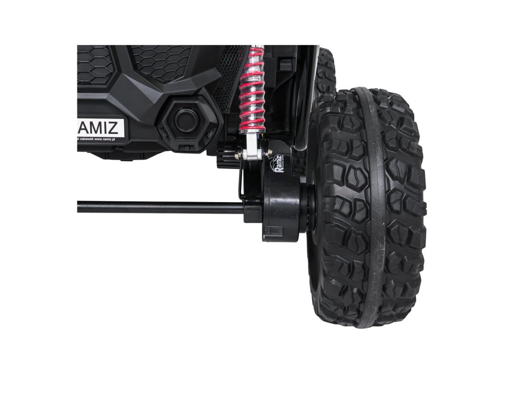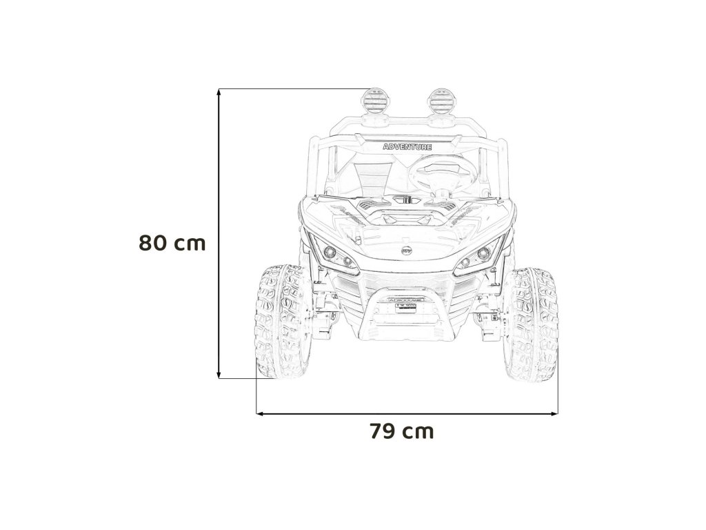 A SPEEDY 4x4 összkerékhajtású Buggy ideális választás a kis kalandorok számára. Négy erőteljes motor, összesen 800 W teljesítménnyel, puha EVA hab kerekek és hátsó lengéscsillapítók biztosítják a sima utazást még a legnehezebb terepen is. Az autó biztonsági övekkel, LED lámpákkal és praktikus STOP funkciós távirányítóval van felszerelve.