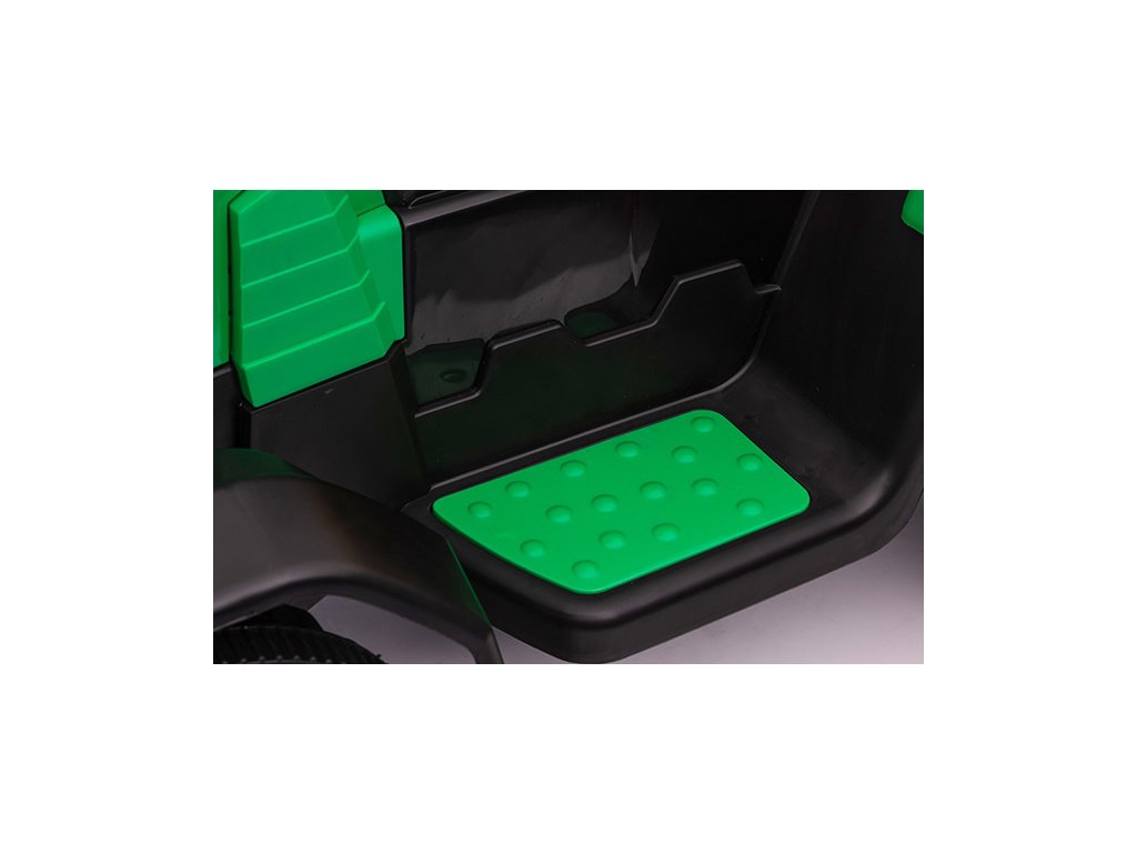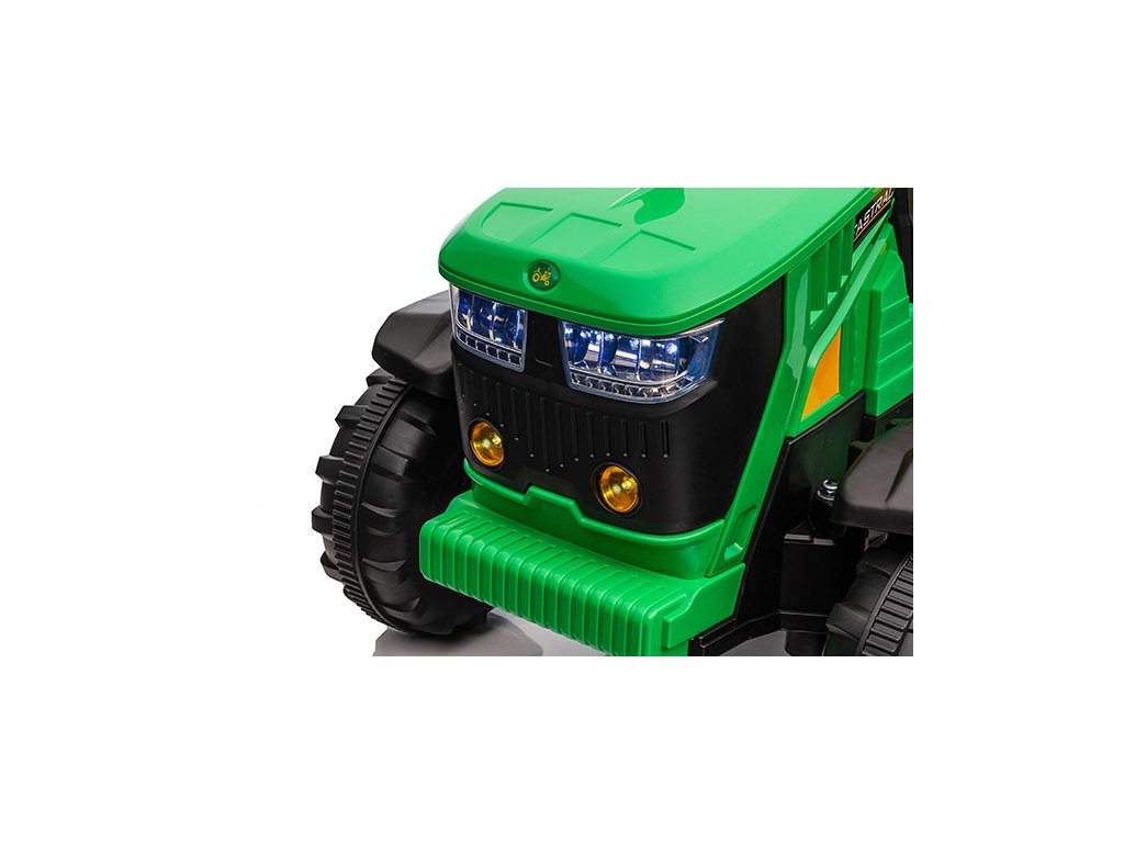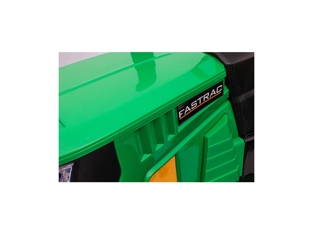 A kényelmes ülés biztonsági övekkel garantálja a gyermek biztonságát vezetés közben. A zenei panel USB-vel, AUX bemenettel és memóriakártya-nyílással szórakozást és interaktivitást kínál. A első lámpák hozzájárulnak a traktor valósághűbb megjelenéséhez.