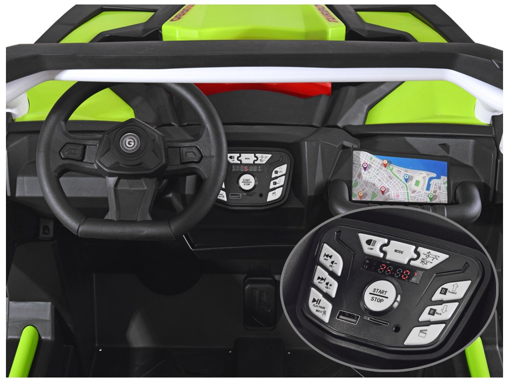 A négy nagy teljesítményű, 800 W összteljesítményű Buggy Turbo elektromos autó egyetlen gyerekgarázsból sem hiányozhat. A játékautót 24V 7Ah akkumulátor táplálja. A kocsi maximális terhelhetősége 50 kg. Indításkor hallani fogja a motor hangját , és vezetés közben a gyermeket minden bizonnyal lenyűgözi a zenepanel rádióval, MP3-mal, előre lejátszott dallamokkal, ráadásul a zenepanelhez is csatlakoztatható. bluetooth.