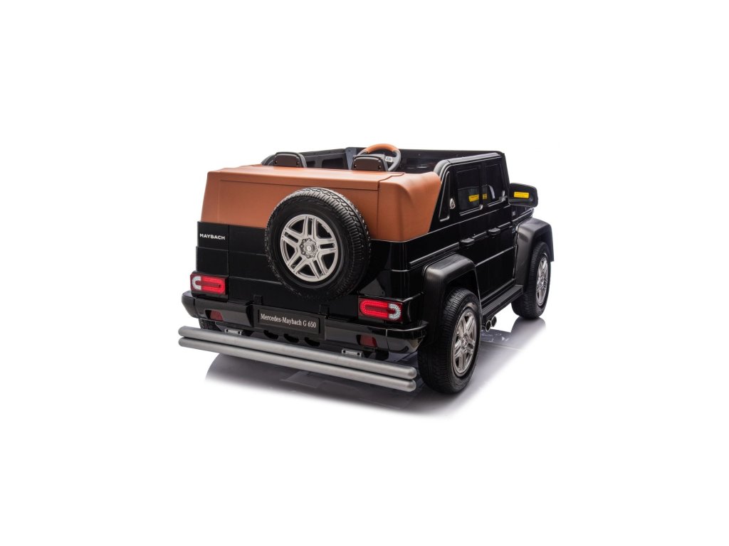 A Mercedes-Benz Maybach G650 egy exkluzív elektromos jármű gyerekeknek, amely egyesíti a kiváló kényelmet, a maximális teljesítményt és a modern technológiát. Négy nagy teljesítményű 200 W-os motor a 24 V-os 14 Ah-s akkumulátorral együtt garantálja a sima és erőteljes utazást még nagyobb kihívásokkal teli terepen is. A puha EVA kerekek és a hátsó lengéscsillapítók hozzájárulnak a kényelmes utazáshoz bármilyen felületen.