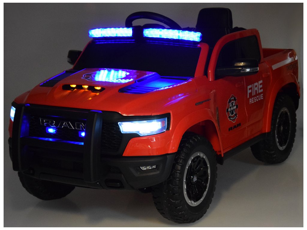 A RAM Pick-up elektromos autó négy, 100 W összteljesítményű motorral és egy 12V 10Ah kapacitású akkumulátorral rendelkezik. Az EVA hab kerekek és az ökobőr borítású ülés biztosítja a kényelmes utazást. A zenepanel határozottan élvezetesebbé teszi gyermeke számára az utazást. MP3 és USB . Terhelhetőség A játékautó súlya 30 kg . Az autó első világítással és nyitható ajtókkal rendelkezik.