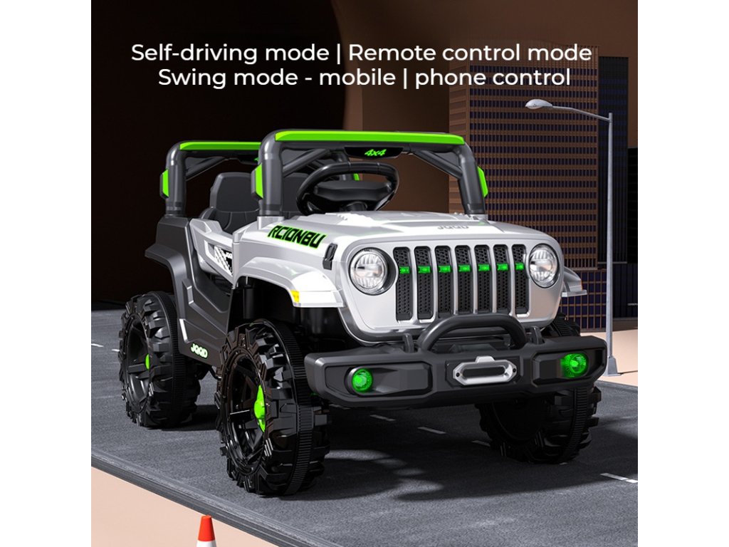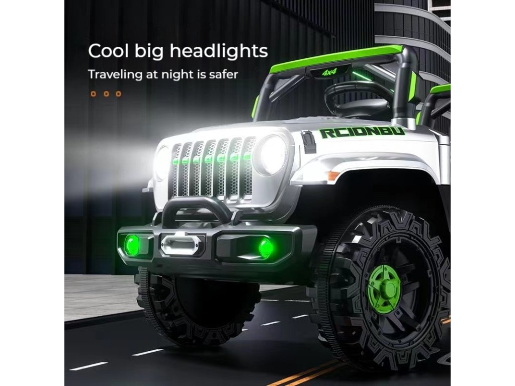 A beépített digitális audiolejátszó USB bemenettel és zenelejátszással még több szórakozást nyújt az úton. Gyermekei élvezhetik kedvenc zenéiket vezetés közben. Az olyan részletek, mint a valósághű fények, hangeffektek és kezelőszervek hitelességet kölcsönöznek, még szórakoztatóbbá téve az utazást. A robusztus konstrukció valódi terepjárókra hasonlít.