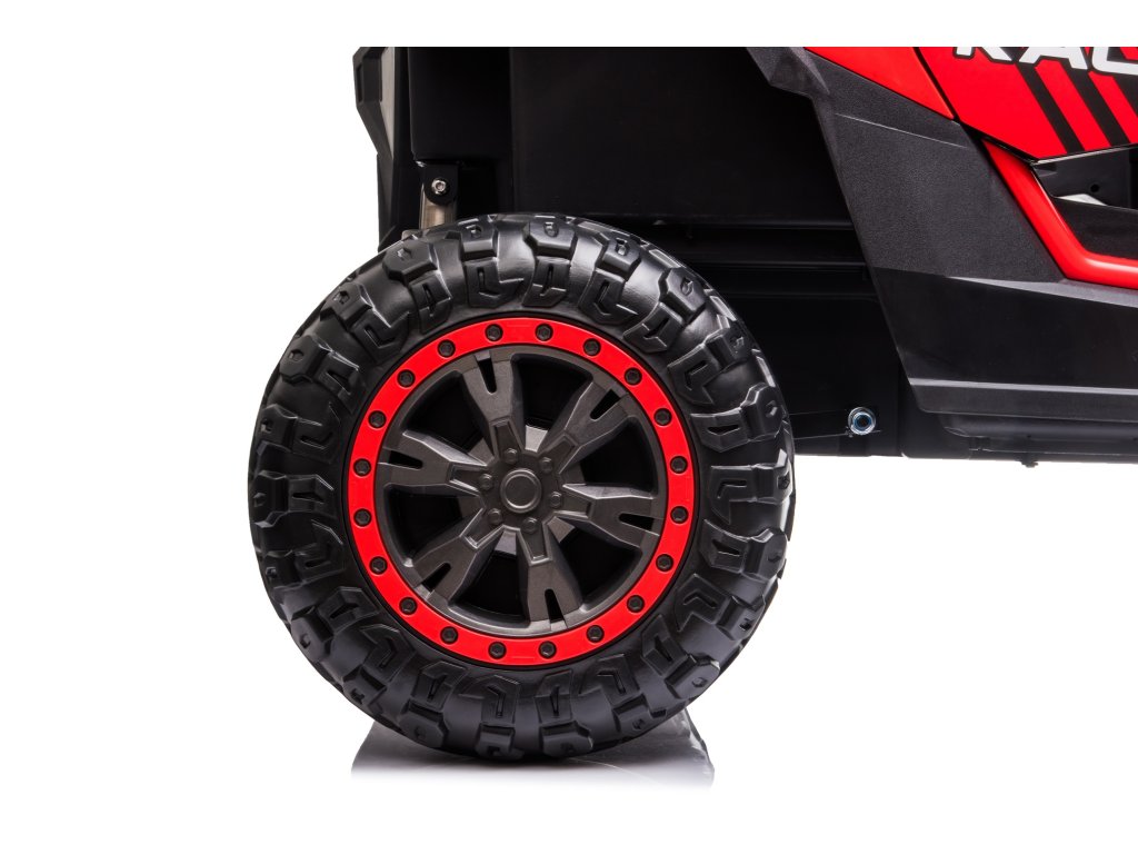 Gyermek elektromos autó Buggy UTV négy erős, 200 W-os elektromos motorral. A kisautó könnyedén megbirkózik bármilyen tereppel. A ülésben kényelmesen elfér két gyermek is, mivel a kisautó akár 60 kg teherbírással is büszkélkedhet.