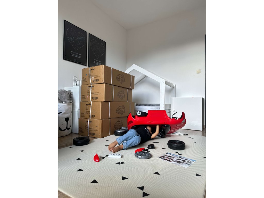 A gyermek teljesen önállóan vezetheti az autót, de a szülők a távirányító segítségével is beavatkozhatnak a vezetésbe. A távirányító gombokkal van felszerelve a minden irányba történő haladáshoz, a sebességváltáshoz (3x előre/ 1x hátra) és a biztonsági fékhez is.