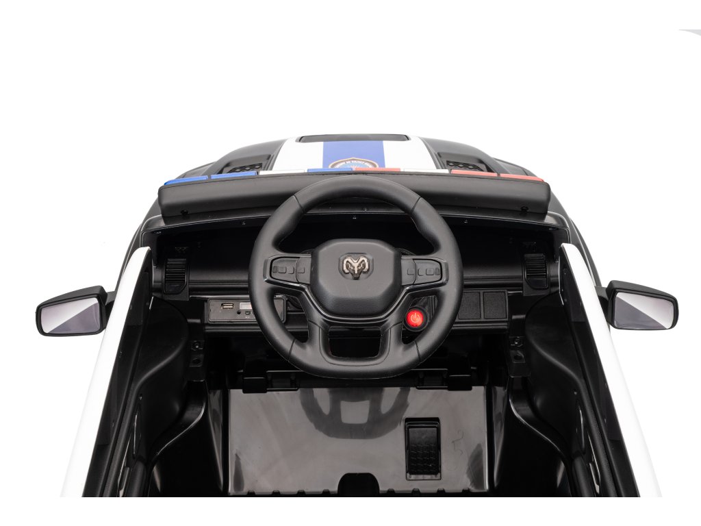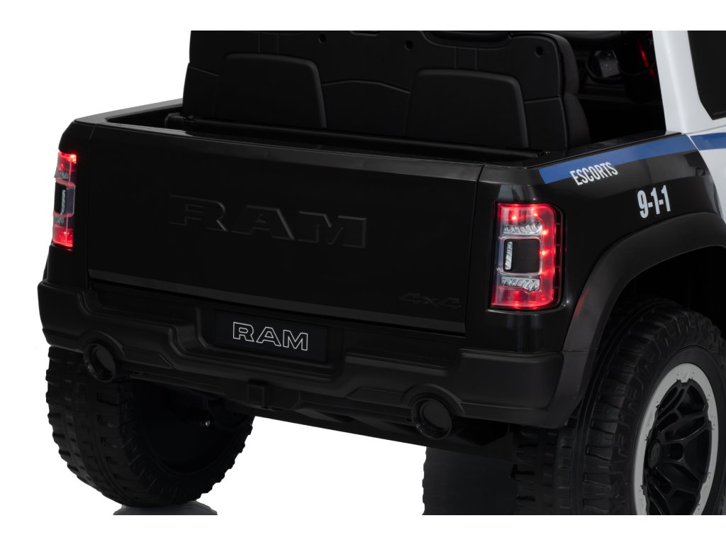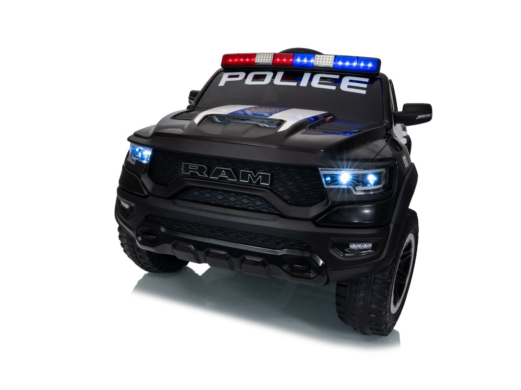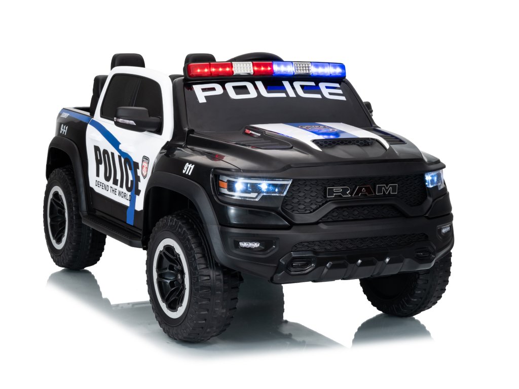 Rendőrségi elektromos kisautó Dodge Ram nem hiányozhat egyetlen gyermek garázsából sem. Az autót egy 12V 10Ah kapacitású akkumulátor hajtja. A jármű maximális terhelhetősége 30 kg. A menetelés során a gyermeket minden bizonnyal leköti a(z) Bluetooth, MP3 és USB bemenettel rendelkező zenei panel.