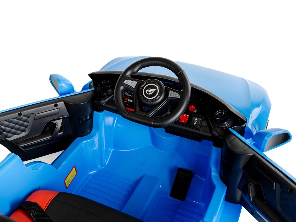 Az autó belseje öko-bőr üléssel és biztonsági övekkel, zenei panellel, AUX, MP3, USB bemenetekkel és dallamgombokkal van felszerelve. Az utat az első LED lámpák világítják meg.