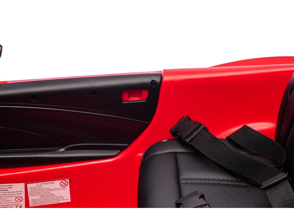 Az autó ökológikus bőr üléssel és 3 pontos biztonsági övekkel rendelkezik, amelyek gondoskodnak a biztonságos utazásról. Az autó maximális terhelhetősége 60 kg. A jármű nyitható ajtókkal rendelkezik.