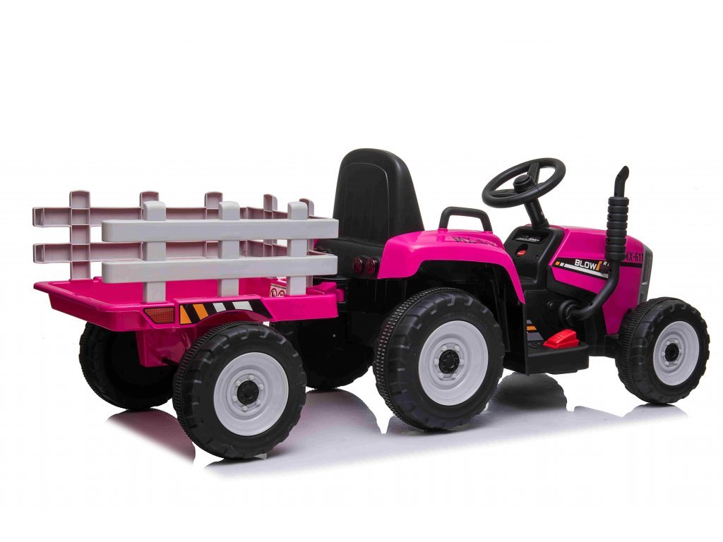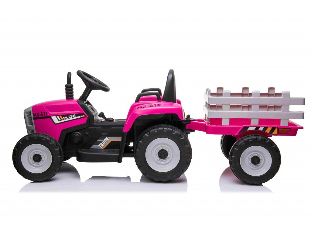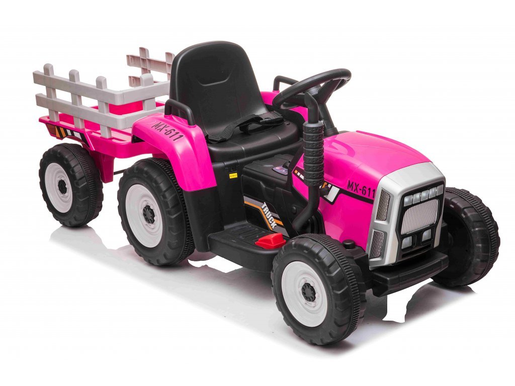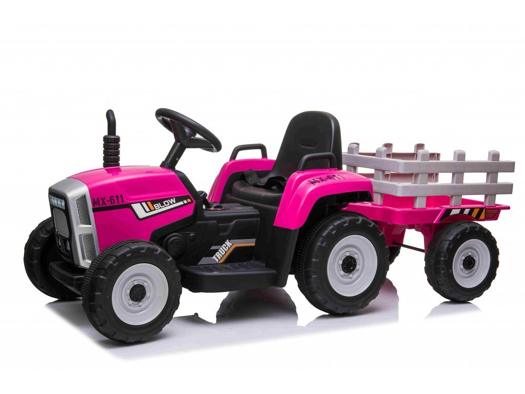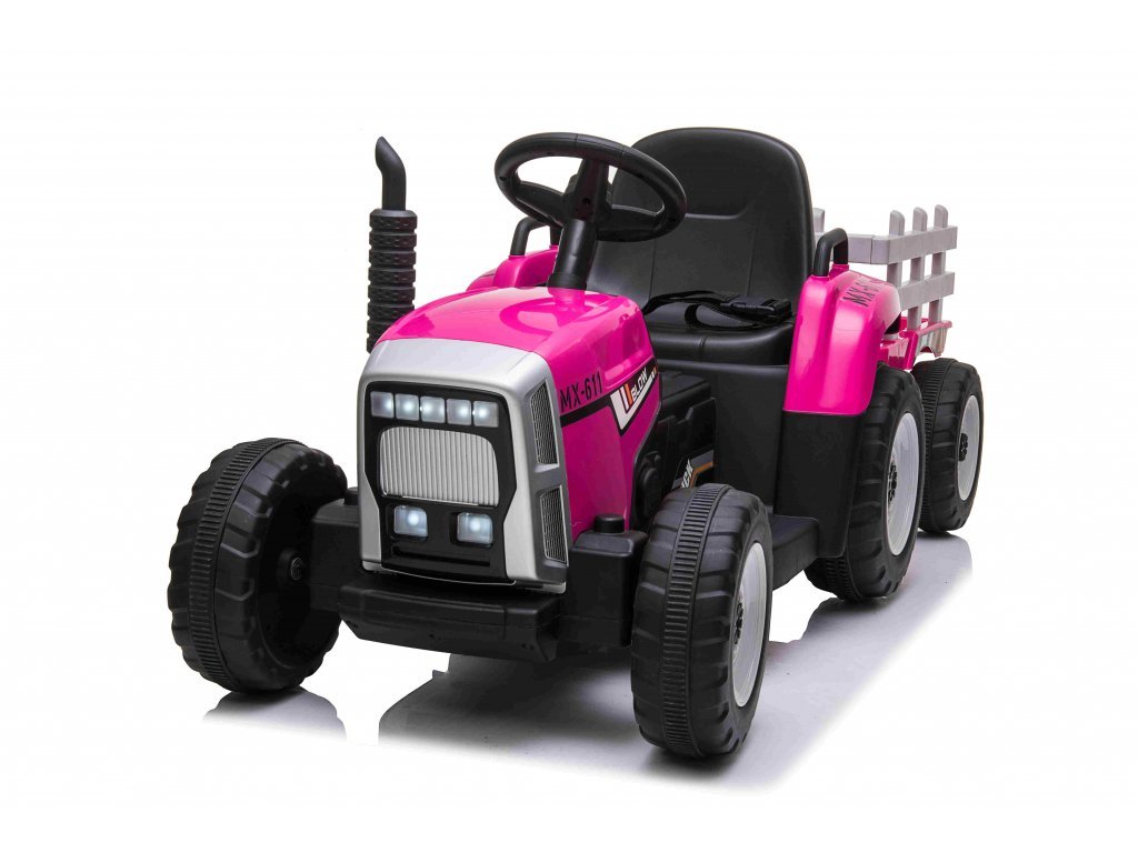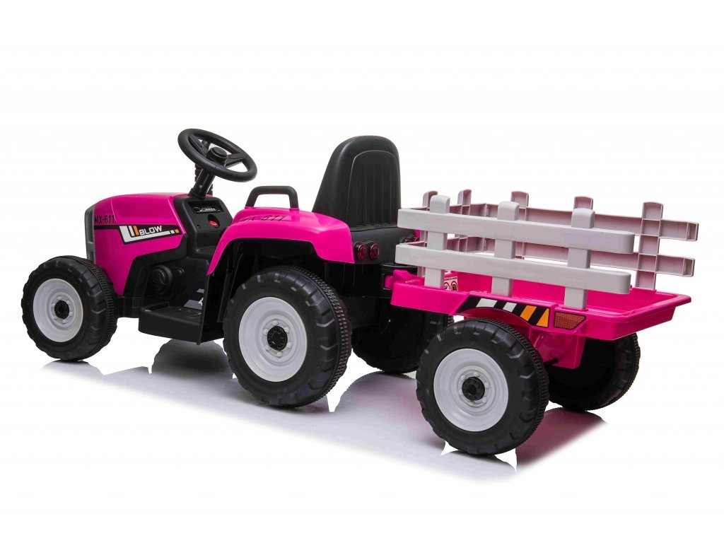 Az elektromos traktor kialakítása négy keréken alapul. Könnyű defektmentes műanyag kerekek. A gyerektraktort 12V-os 7Ah-s akkumulátor hajtja, melyhez 2x45W-os motorok társulnak. A traktort fiúknak és lányoknak egyaránt szánják – az egyetlen korlátozás a 30 kg-ig terjedő terhelés.