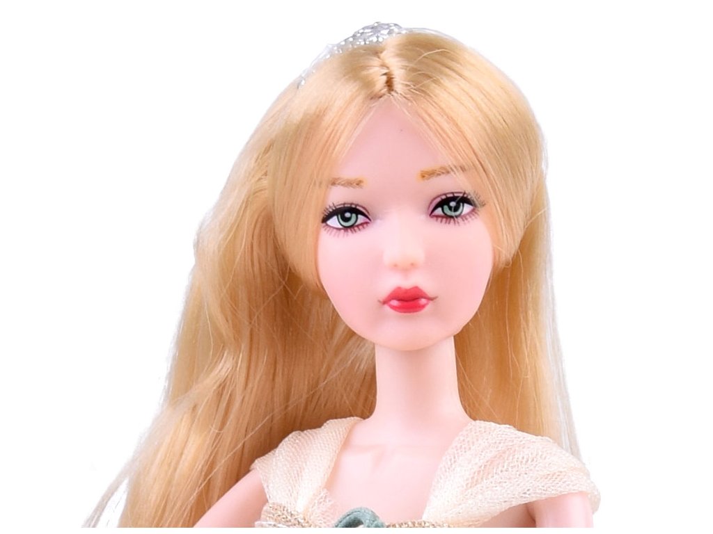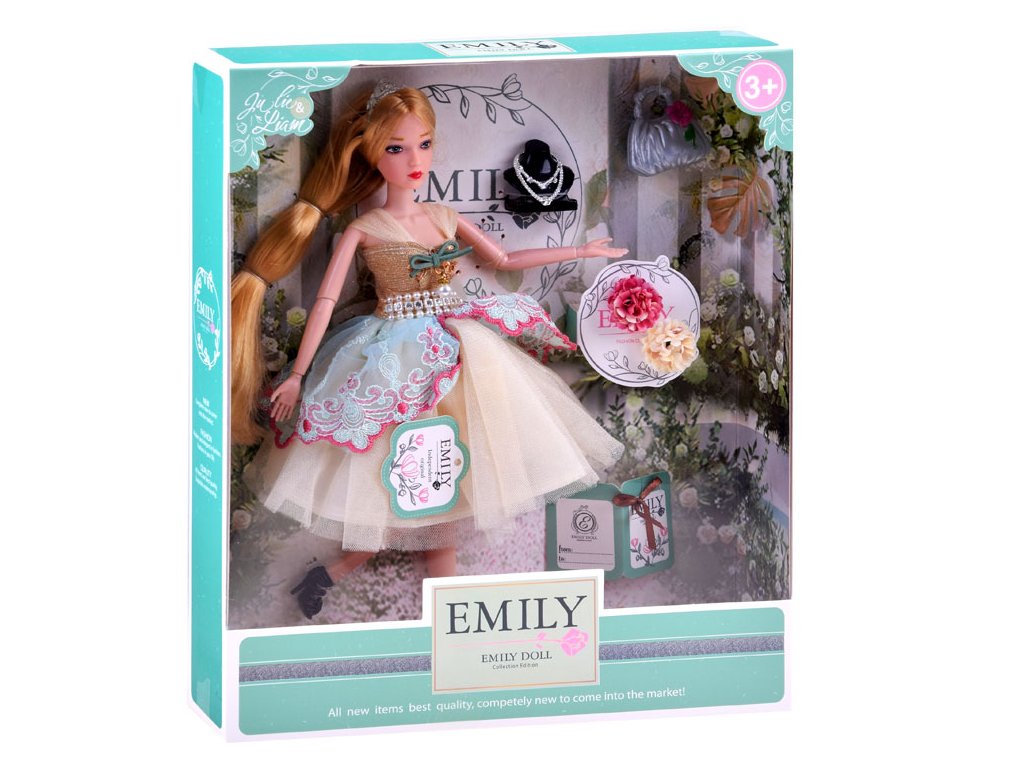 A koktélruhába öltözött Emily babának hosszú, szőke haja van, amelyet tiara díszít. A baba tüllszoknyás ruhát és fekete sarkú cipőt visel. A készletet kézitáska, tiara és nyaklánc gazdagítja. A babának mozgatható végtagjai vannak a könyökben, a csuklóban és a térdben.