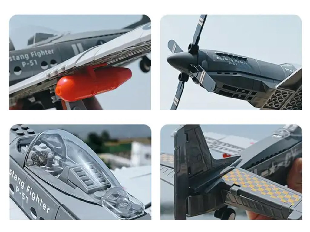 Tato stavebnice Letadla jistě potěší každého fandu těchto vzdušných strojů. Stavěcí kůly umožňují postavit bojovníka Mustang P-51. Dokončený letoun může být ozdoben dodanými samolepkami, čímž vypadá ještě efektněji. Stavěcí kůly jsou v typické šedé barvě a vynikají svou jednoduchostí spojení. Hotový model bude skvělou ozdobou dětského pokoje.