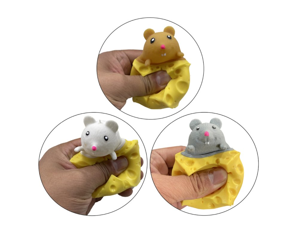 Érzékszervi játék az érintés gyakorlására. Kiváló kéz- és ujjgyakorlatokhoz. Gyerekek számára készült a motoros készségek fejlesztésére, de felnőttek számára is a stressz csökkentésére. Csak finoman nyomja meg tenyerével a sajtkockát, és a vidám egér gyorsan kiugrik a közepéből, hogy újra elbújjon.