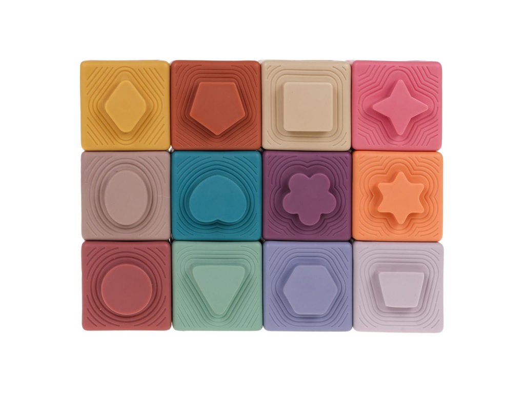 12 db színes szenzoros kocka készlet 6 hónapos kortól . A különböző színek serkentik a baba érzékszerveit, a különböző formák pedig kreatív játékot ösztönöznek. A különböző textúráknak köszönhetően minden kocka más-más érzékszervi élményt nyújt a gyermek számára. A kockák terápiás, oktatási célokra vagy érzékszervi játékként használhatók babák számára.