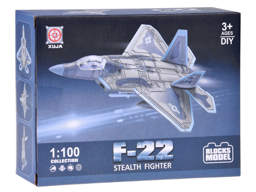 Sada stavebnicových kostek, která umožní sestavení modelu bojového letadla F-22 v měřítku 1:100, bude ideální pro malé fanoušky vojenské techniky. Sada obsahuje něco přes dvacet kostek. Velikost kostek byla přizpůsobena mladším milovníkům skládání, takže je vhodná pro děti od 3 let.