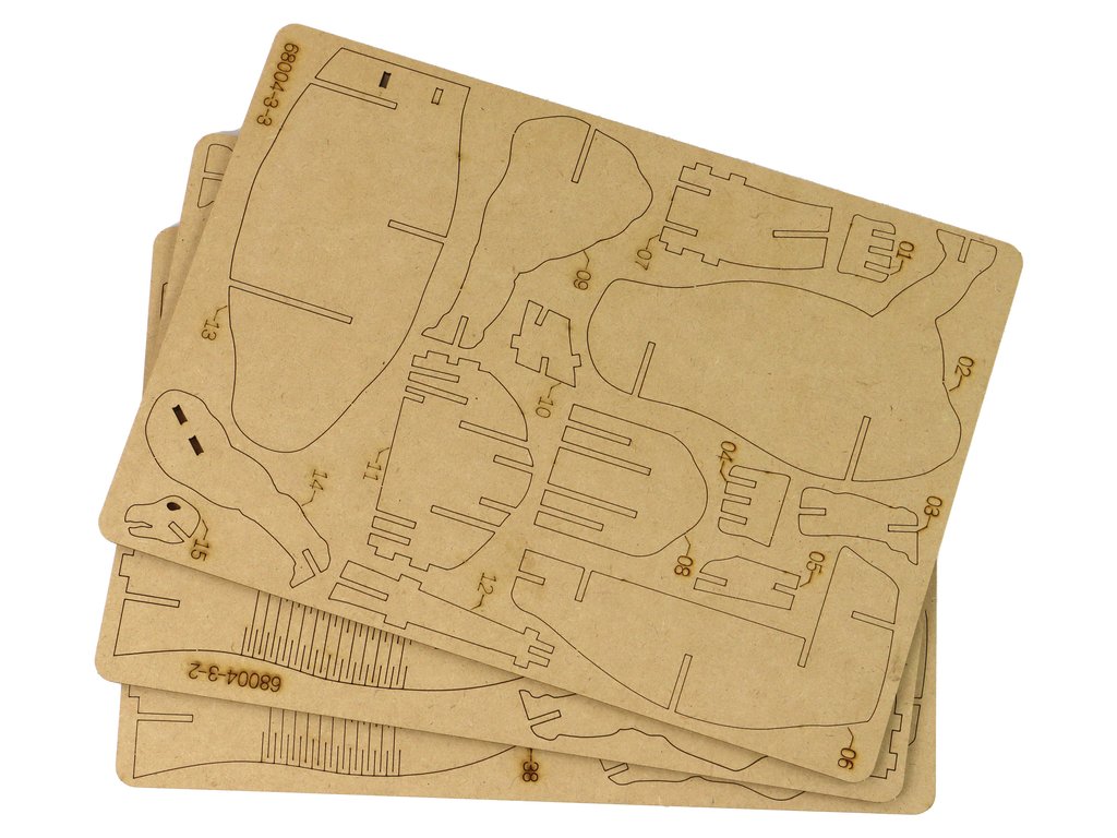 Pro trvalé spojení dílků doporučujeme použít speciální lepidlo na dřevo, čímž se model stává stabilní konstrukcí připravenou k další radosti. Po dokončení mohou děti přidat své osobní kreativní prvky malováním modelu modelářskými barvami, čímž mohou vyjádřit svou vlastní představivost a styl.