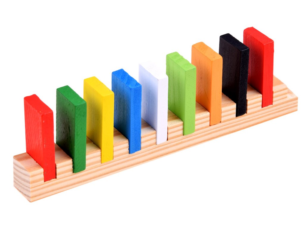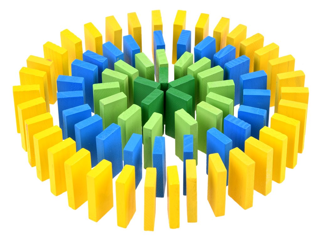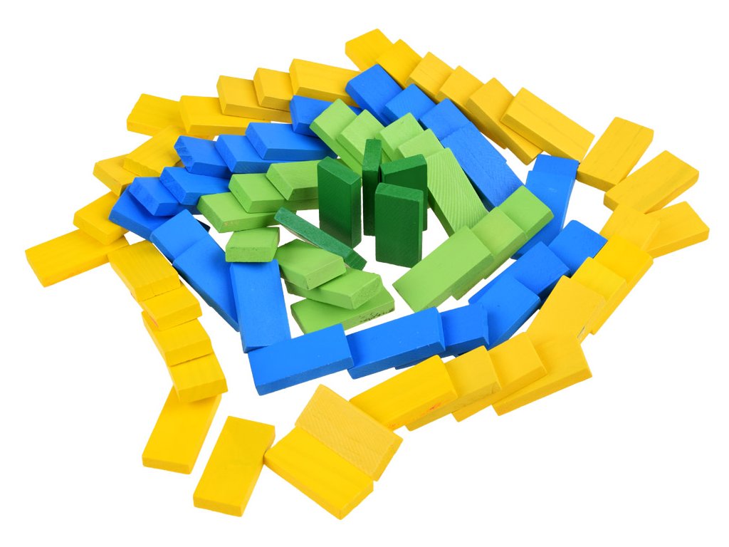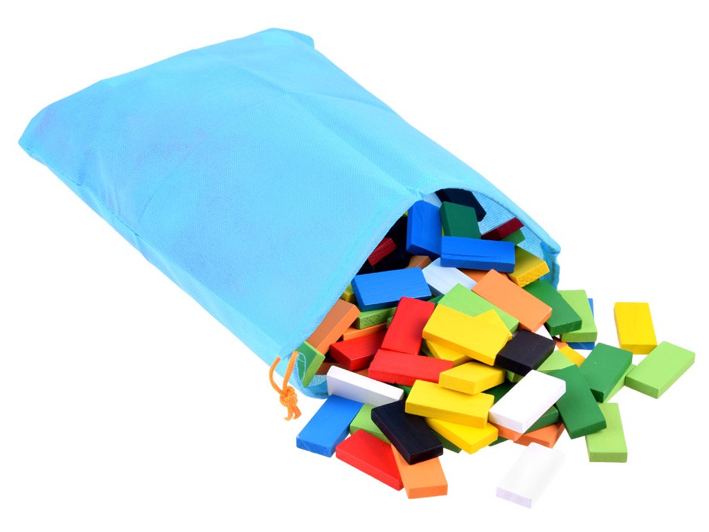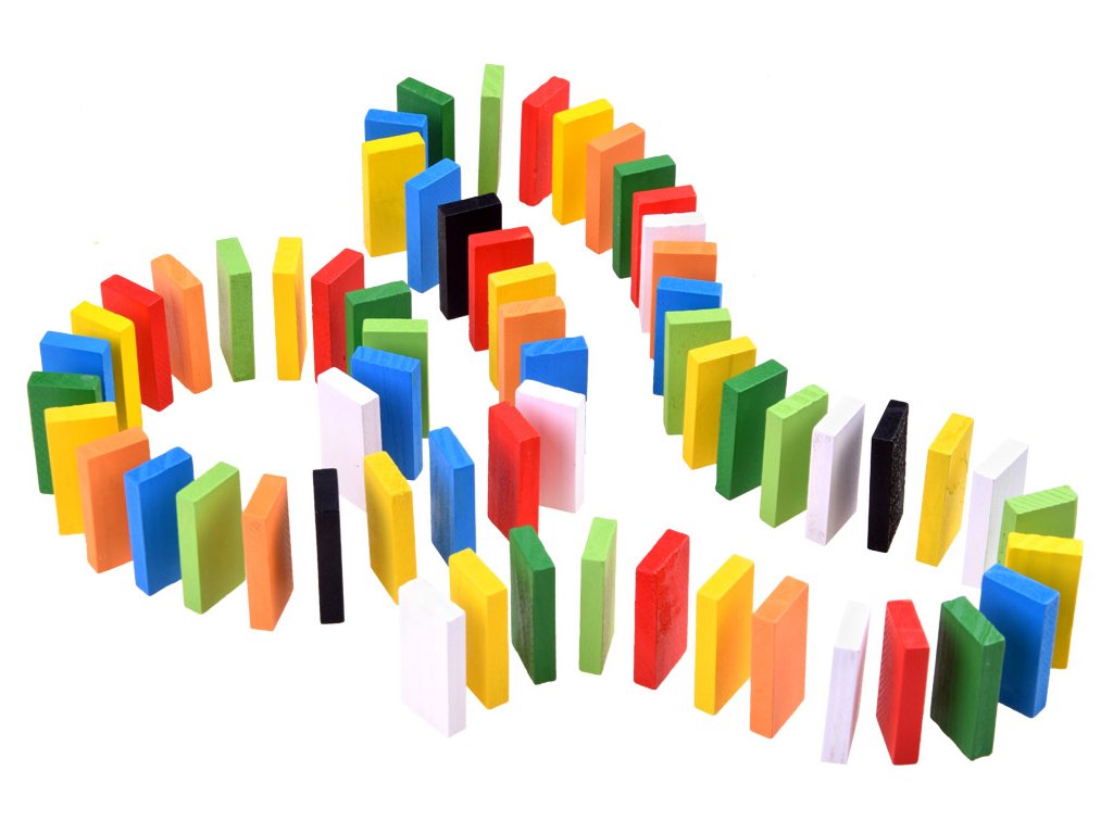 Barevné, dřevěné kostky DOMINO zajistí spoustu skvěle stráveného času. Sada obsahuje 300 prvků, ze kterých může dítě skládat různé kombinace, stavby atd. S touto sadou je možné vytvořit efektní tratě, které se rozsypou po převrácení jedné kostky a vytvoří kaskádu padajících prvků před sebou. Dítě může z barevných obdélníkových kostek stavět fantastické konstrukce a tratě. Skvělá sada nabízí mnoho možností hry a učení.
