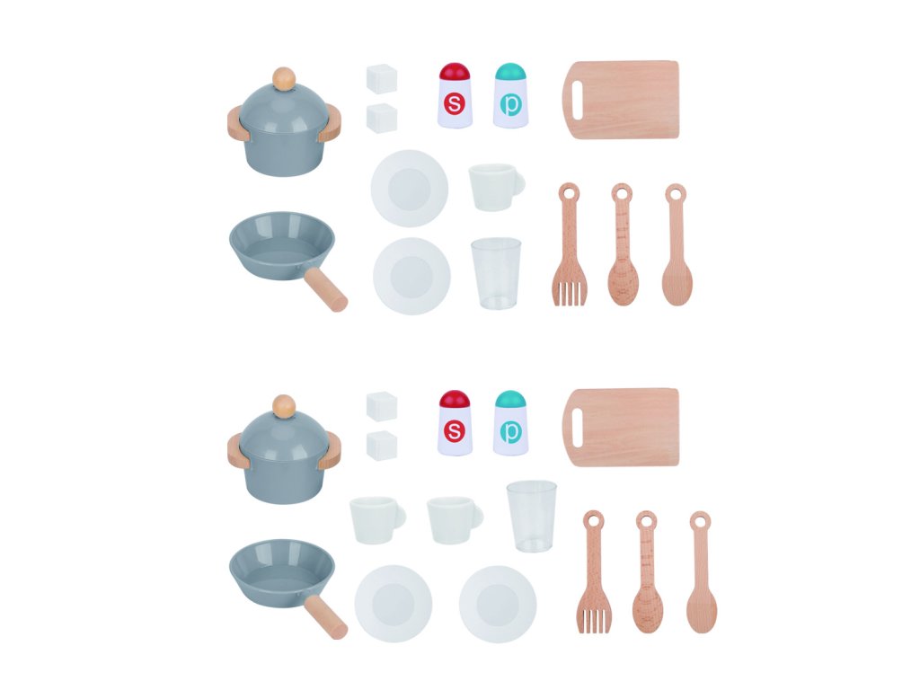 Ez a fából készült konyha nagyszerű lehetőséget kínál a kis szakácsoknak, hogy felfedezzék a főzés és az otthoni ápolás világát. Valósághű funkciókkal van felszerelve, mint például a tűzhely hangokkal és forgatható gombokkal , mikrohullámú sütő, átlátszó ajtós sütő , arany csapokkal ellátott mosogató és mosogatógép. Ez autentikusabb főzési élményt ad a gyerekeknek. Kompakt , 88 x 88 x 30 cm -es méretének köszönhetően a konyhasarok könnyen illeszkedik a gyerekszobába