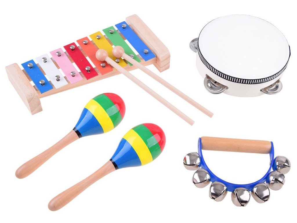 A fából készült hangszerkészlet 4 hangszert tartalmaz, amelyek ösztönzik a gyermekek kreativitását. A hangszerek fejlesztik a gyermekek zenei hallását, ritmustartásra tanítják a gyerekeket.
