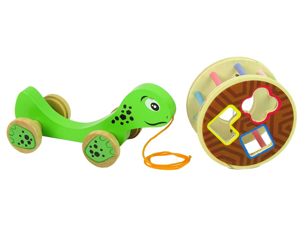 A fából készült teknős tökéletes oktatójáték a kisgyermekek számára. Egészen öntudatlanul társítjuk a játékot a tanuláshoz. A hátoldalon elhelyezett, 3 blokkból álló válogatóval ellátott nagy kör lehetővé teszi a pontosság gyakorlását, a geometriai alakzatok formájának megtanulását és a koncentráció növelését.
