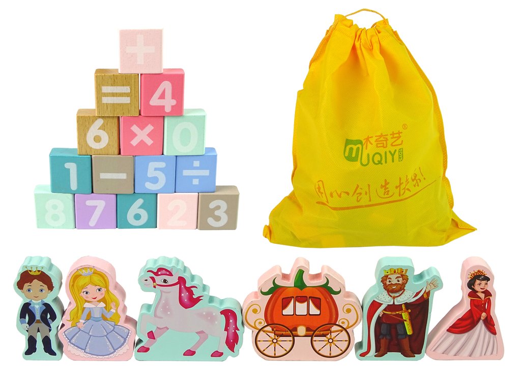 Dětská sada dřevěných kostek a puzzle je skvělý dárek pro nejmenší děti. Sada se skládá z 67 dílů s motivem princezen. Na kostkách se nachází matematické operátory a čísla. Všechny součásti sady jsou zabalené v kbelíku. Hračka u dětí procvičí jemnou motoriku a představivost.