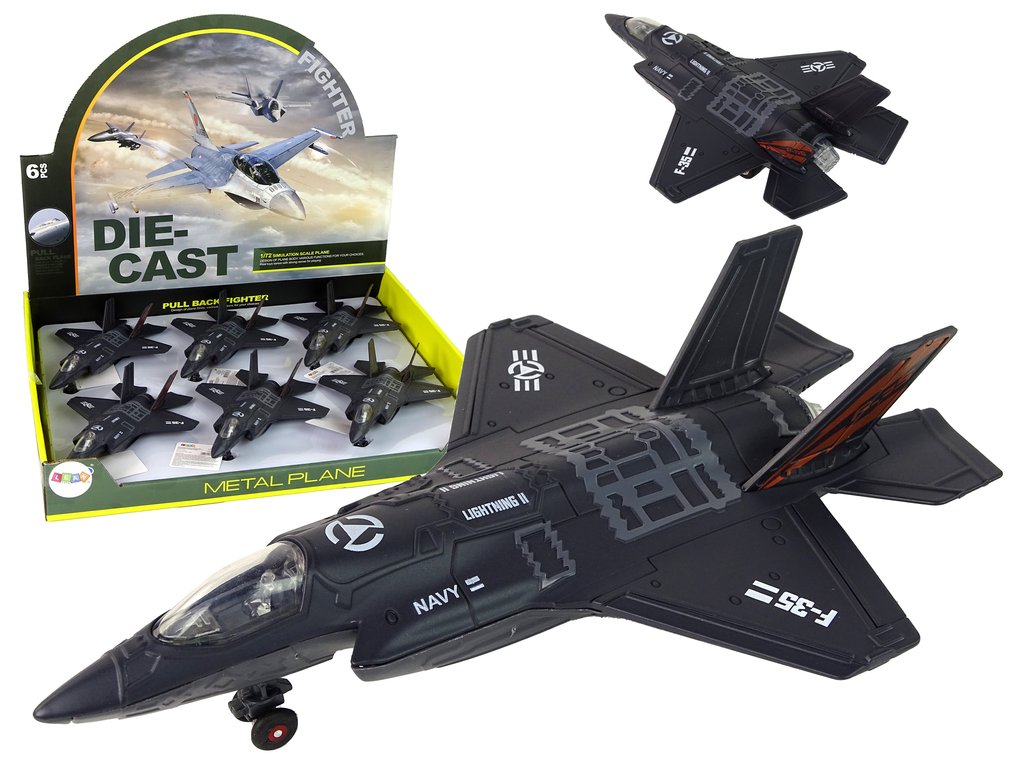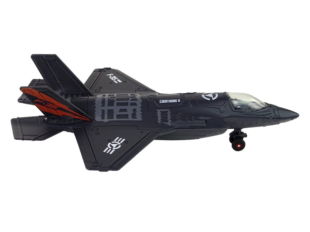Fekete repülőgép súrlódással, fényekkel és hangokkal 1:72 méretarányú
