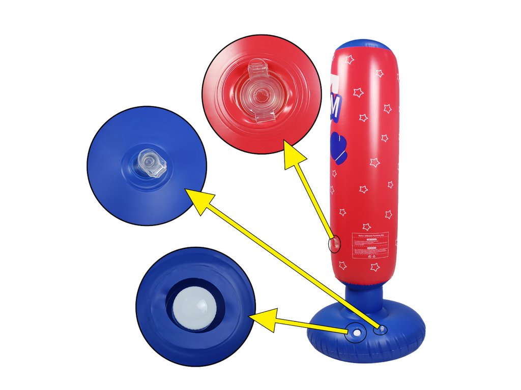 Bemutatjuk a felfújható boxzsákot - remek társ a küzdősportok szerelmeseinek! Ez a színes, intenzív vörös és kék tónusú táska nem csak edzéseszköz, hanem egyben sok szórakozás forrása is.