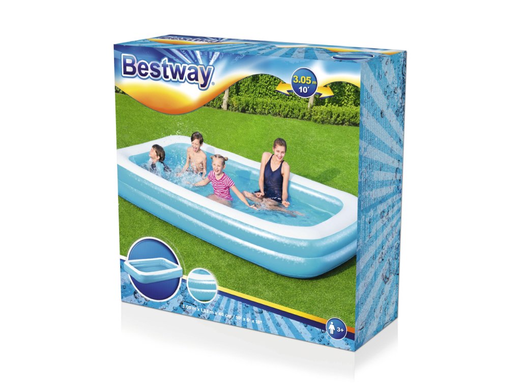 Nagy, megbízható medence az egész család számára , melyben a gyerekek szabadon úszhatnak. A medence könnyű, így a nap bármely szakában könnyedén áthelyezheti oda, ahol a legmelegebb. Könnyen felfújható és leereszthető, tárolása nem okoz gondot.