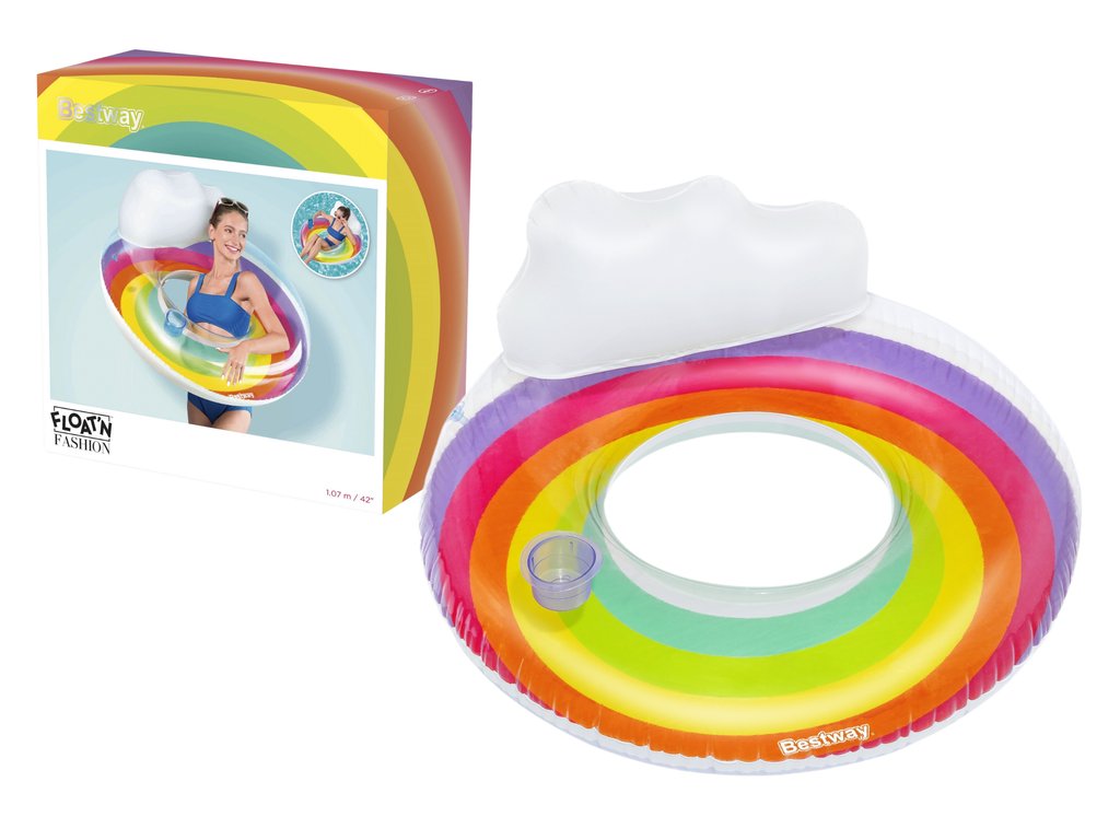 Felfújható gyűrű háttámlával 107cm szivárvány