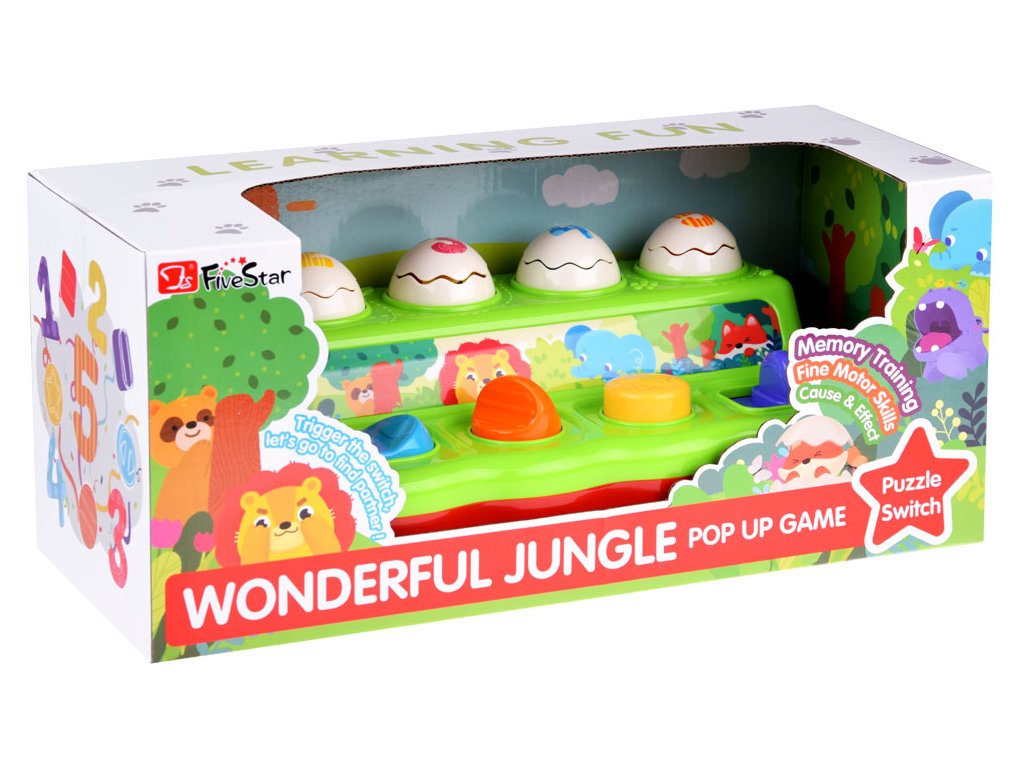 Celou zábavu doprovázejí atraktivní zvuky, melodie a blikající jemné světlo. Hračku je samozřejmě možné hrát i bez zvuku - stačí jen stisknout daná tlačítka a zvířátka také budou vyskakovat.