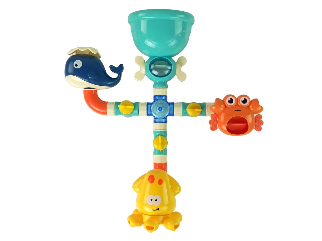 Három bájos tengeri lényt tartalmaz: egy sötétkék bálnát, egy vörös rákot és egy sárga polipot. Hogyan biztosítanak szórakozást? Könnyű! Ha vizet önt a felső kék edénybe, a gyermek figyelheti, ahogy a víz átfolyik a játék különböző részein.