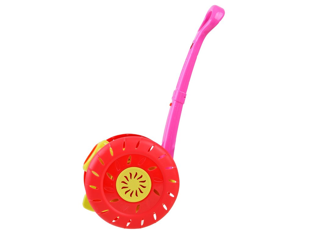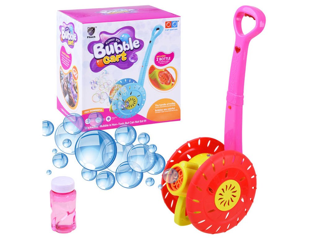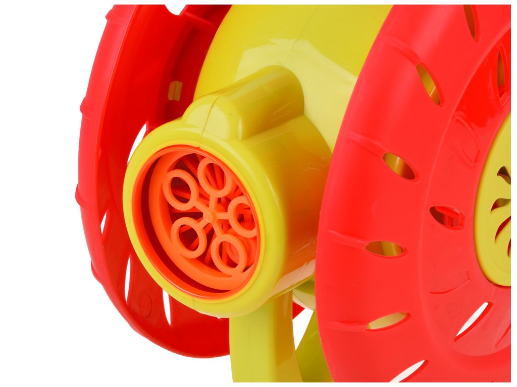 Úžasné tlačné kolečko na výrobu mýdlových bublin přinese radost každému dítěti. Tato hra umožňuje vypouštět barevné bubliny z automatu. Stačí jen připevnit lahvičku s tekutinou do spodní části, stisknout tlačítko na rukojeti hračky a začne vypouštět magické, duhové bubliny. Ale to není vše, během hry slyšíte veselou melodii a světélka blikají.