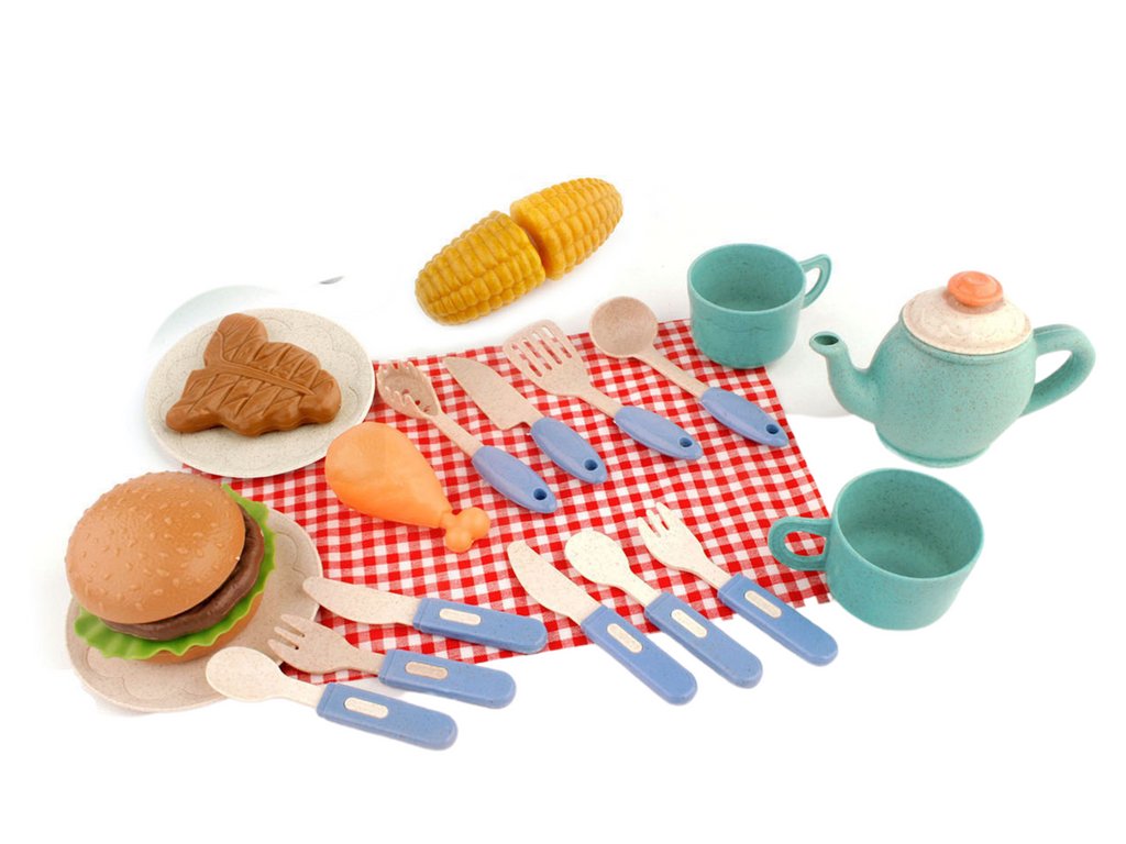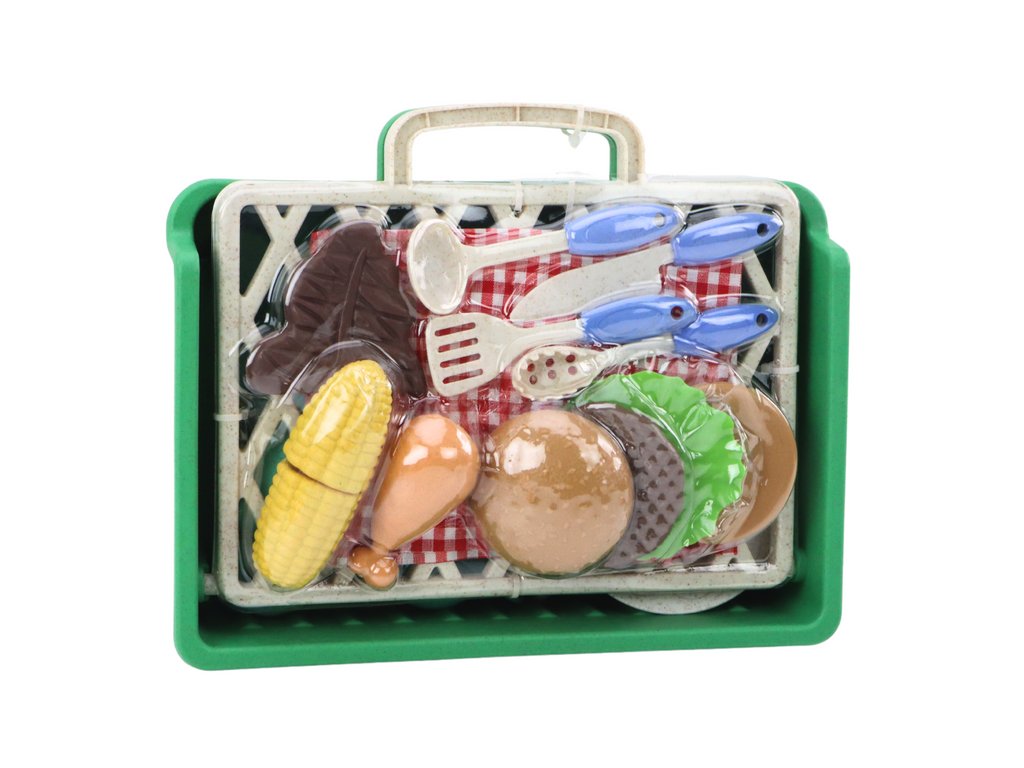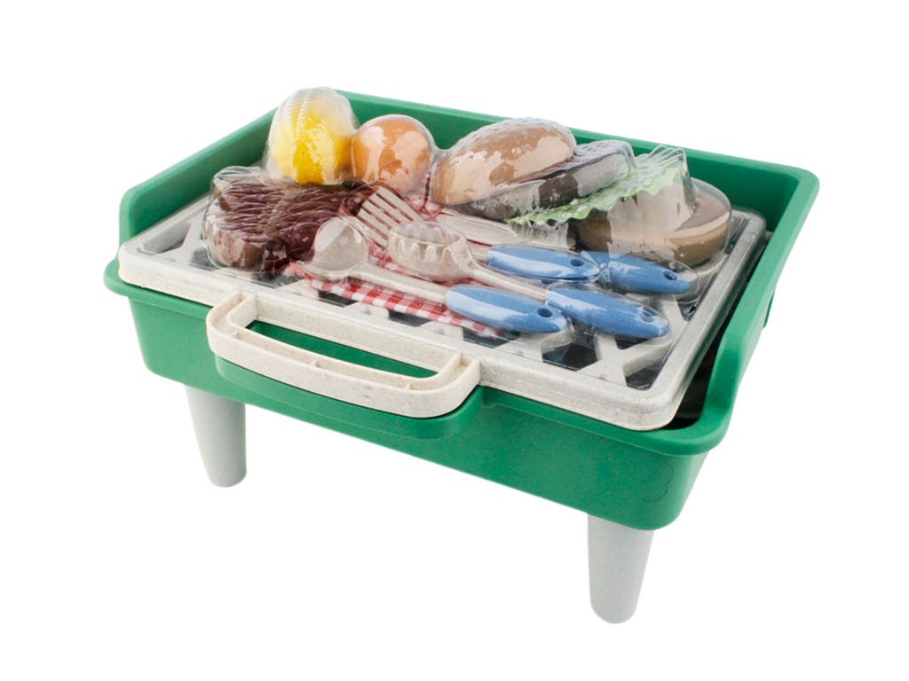 A készlet valósághű grillezési termékeket tartalmaz, amelyeket a gyerekek a grillre helyezhetnek. A készletben található evőeszközök és edények ideálisan illeszkednek a kis kezekhez, így könnyebb és kellemesebb a kezelésük.
