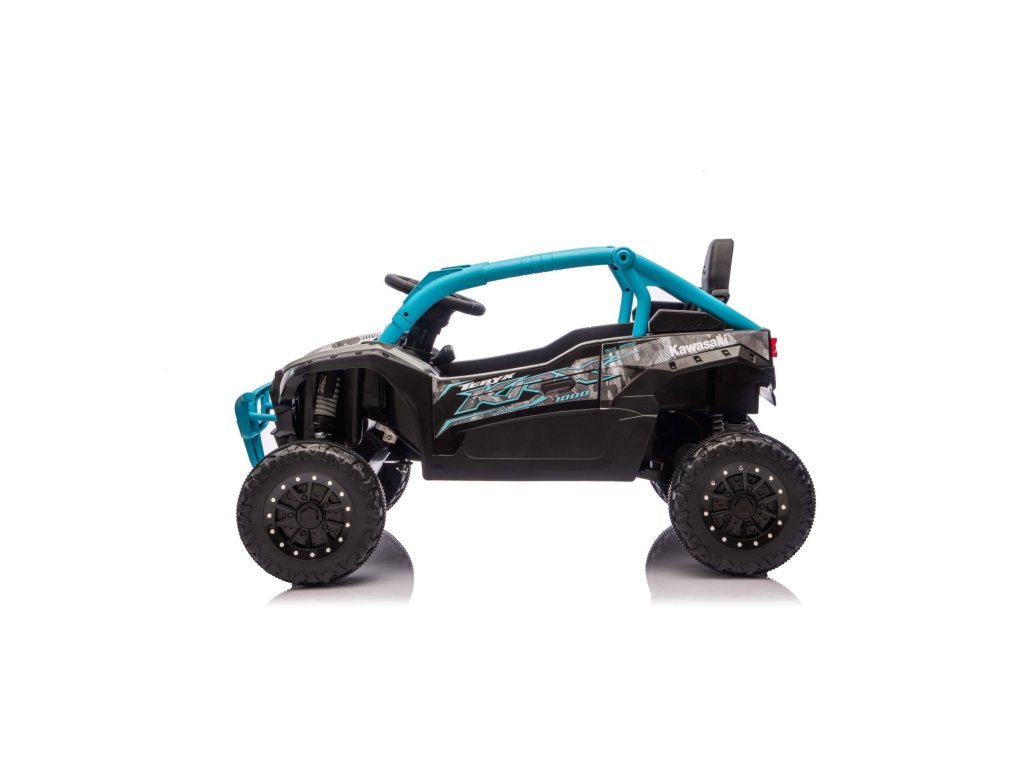 Stílusos Buggy Kawasaki TERYX KRX1000 gyerek kisautó ideális választás kis sofőrök számára, akik imádnak terepen és sima felületen is száguldozni. A nagy teljesítményű 24V-os rendszer négy motorral (2× 20W elöl, 2× 45W hátul) elegendő erőt biztosít még az egyenetlen terepen is. A kisautó puha EVA kerekekkel, kényelmes bőr üléssel és biztonsági övekkel van felszerelve. A STOP funkcióval ellátott távirányítónak köszönhetően a szülők mindig kézben tarthatják a járművet. A felszereltség tartalmaz LED lámpákat, audio panelt Bluetooth-szal, MP3, USB bemenettel és további funkciókkal.