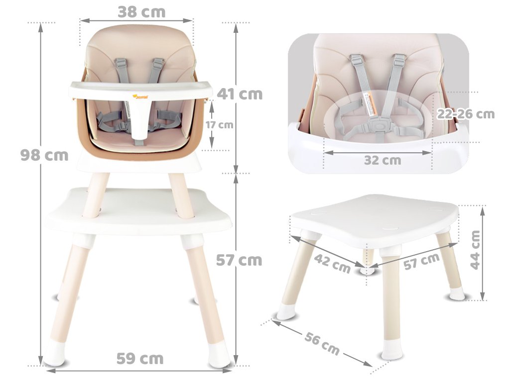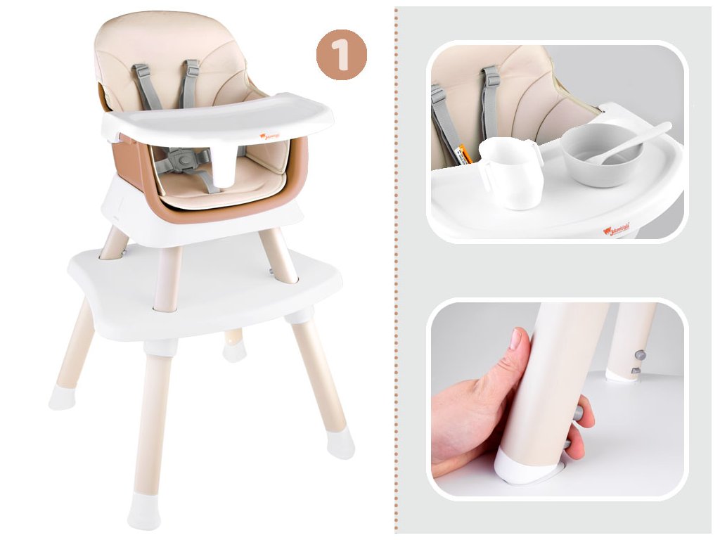 Gyerek étkezőszék 6 az 1-ben bézs színben