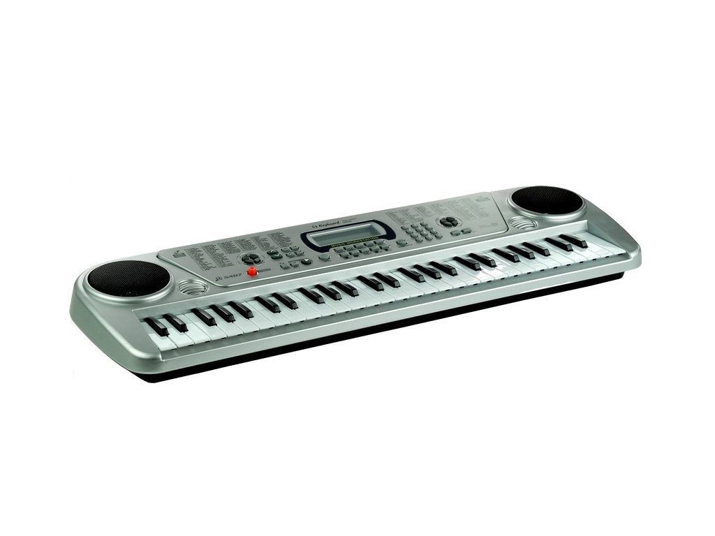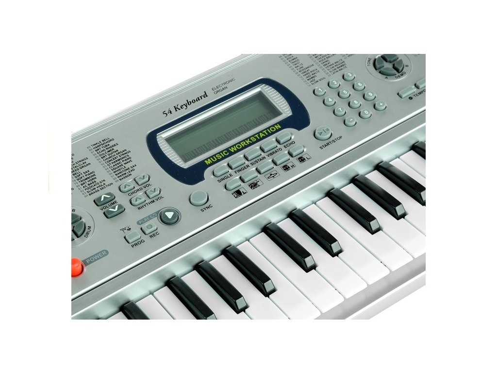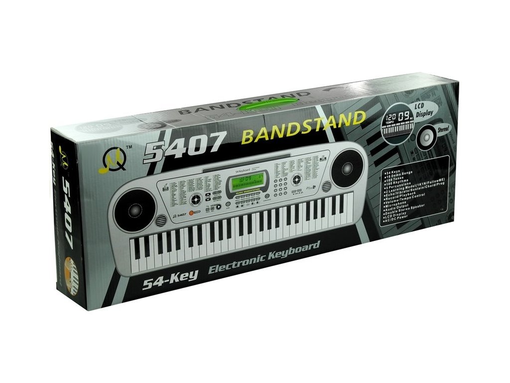 Miért válassza ezt a billentyűzetet? Könnyű felépítése lehetővé teszi a játék mozgatását és például asztalra helyezését. A Keyboard két nagy sztereó hangszóróval van felszerelve, így hangereje megfelelően igazodik az otthoni körülményekhez. A felső részen egy zöld háttérvilágítású LCD kijelző található - ez megkönnyíti a dalok, a billentyűk vagy a tempó kiválasztását. A billentyűzetnek két bemenete van a szerkezet hátsó részén - a 230 V-os tápegységhez és két további hangszóróhoz. Belül 6 db AA 1,5V elemet kell elhelyezni, melyek nem részei a készletnek. A játék minden 3 évesnél idősebb gyermek számára készült.