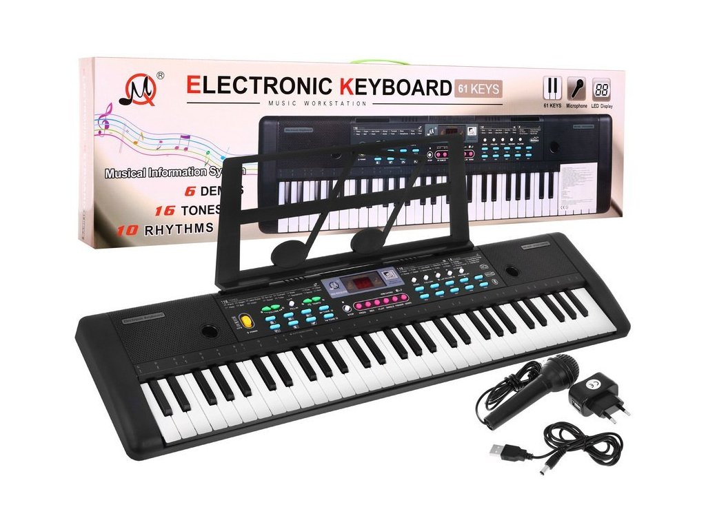Gyermek billentyűzet mikrofonnal, fekete, SÉRÜLT CSOMAGOLÁS