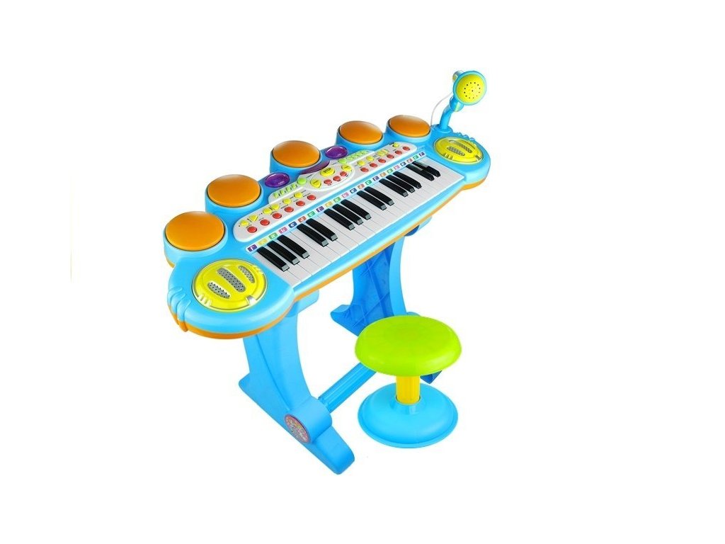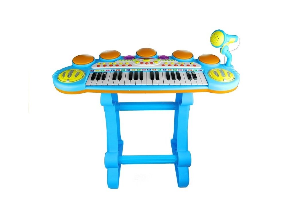 Gyermek billentyűzet mikrofonnal és asztallal, kék