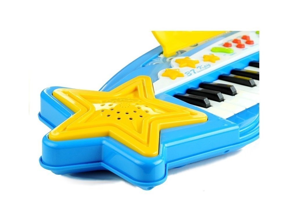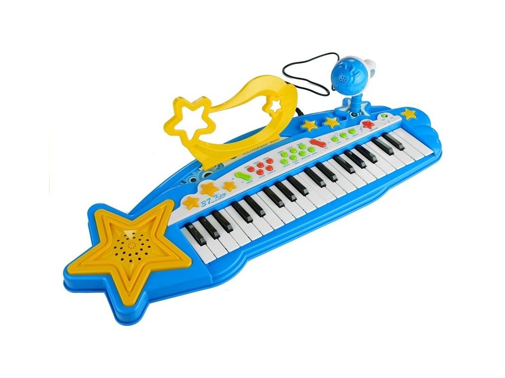 A gyermekeknek szánt zenei billentyűzet 37 billentyűt tartalmaz - 22 fehér és 15 fekete -, és számos funkcióval van felszerelve a szórakozás és a tanulás érdekében. A nagy, csillag alakú hangszóró , a tempó és a hangerő szabályozásának lehetősége, az öt zenei műfaj és a különféle hangszerek, például gitár vagy orgona közötti választás, nagyszerű élményt biztosítanak.