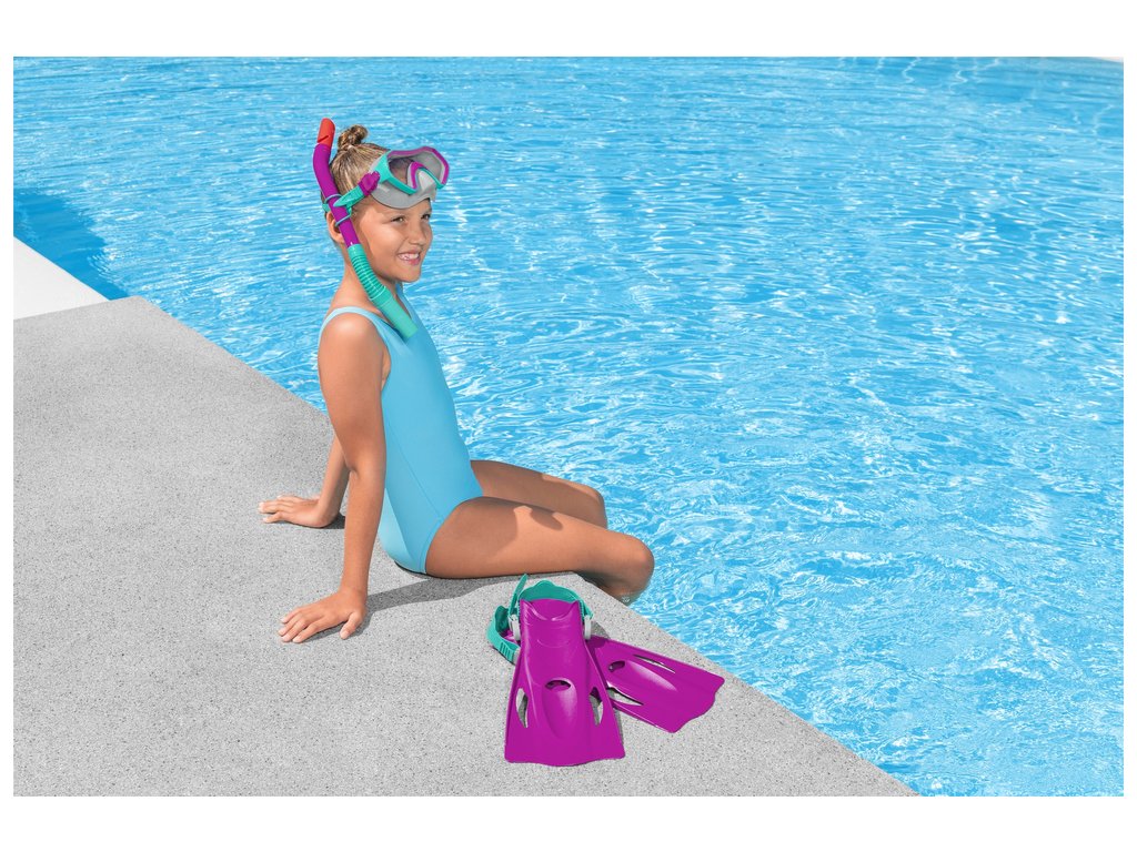 Gyermek búvárkészlet snorkel, szemüveg és uszony Bestway rózsaszín